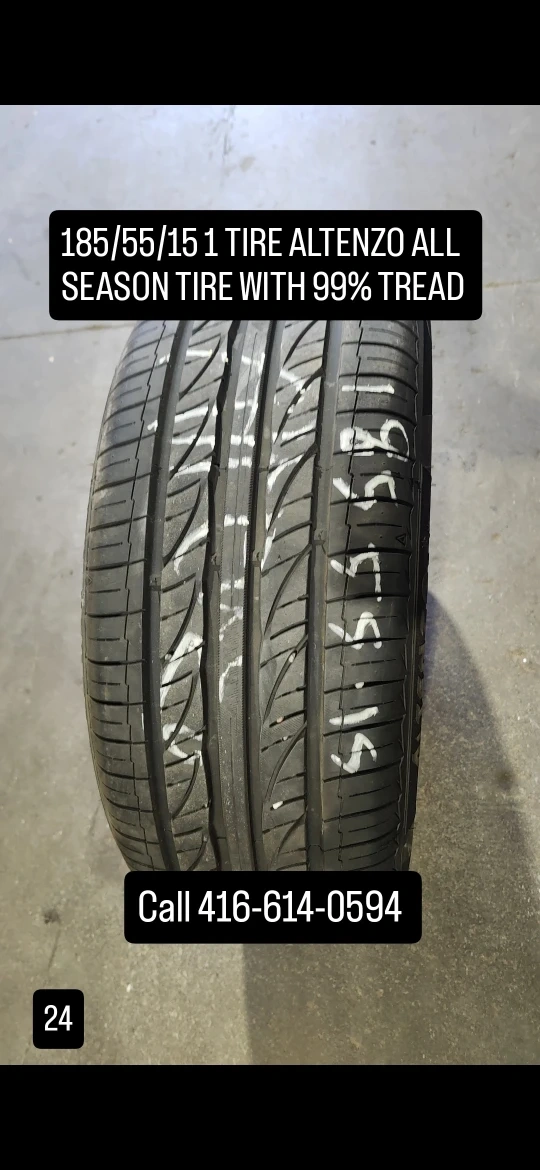 Selling a single tire, size 185/55/15. It's an Altenzo all-season tire with 99% of the tread remaining. Great condition!