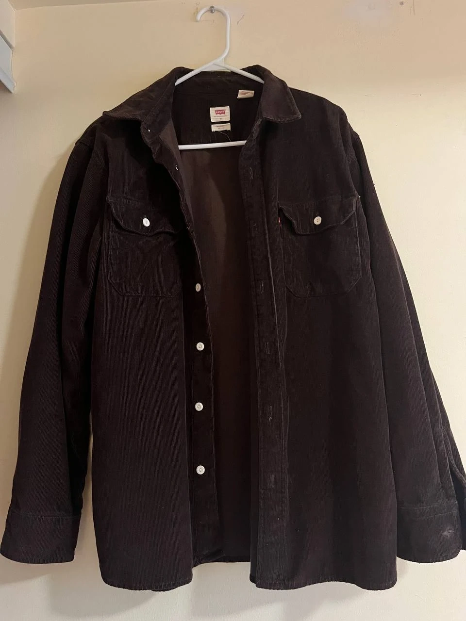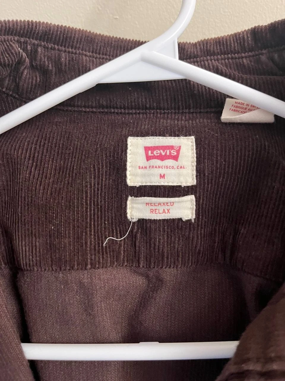 Levi's relaxed fit corduroy shirt in size medium. It's a classic and comfortable piece, perfect for layering or wearing on its own. Great for a casual look!