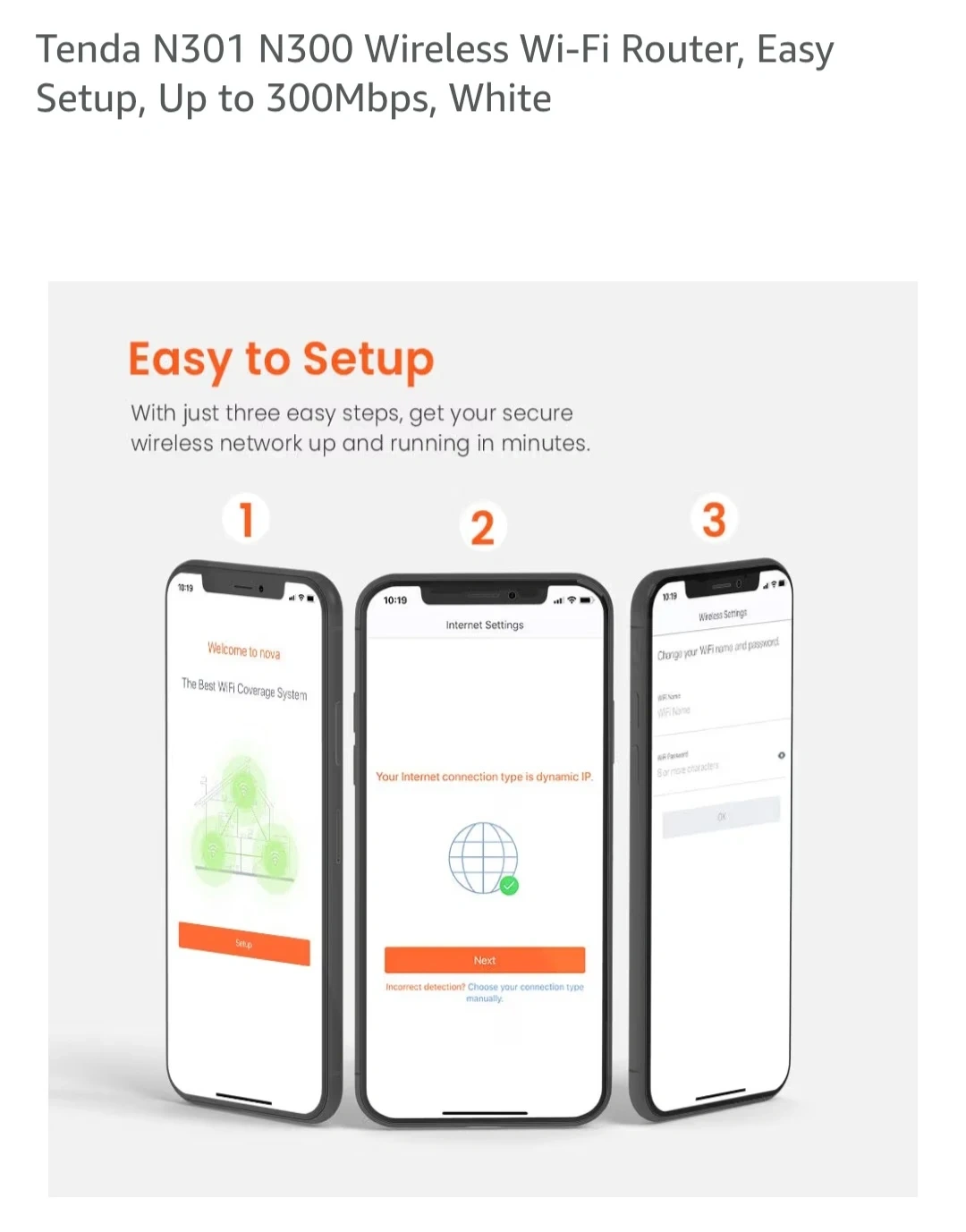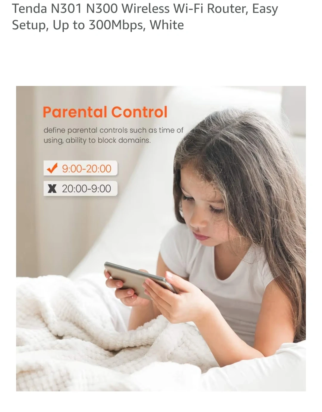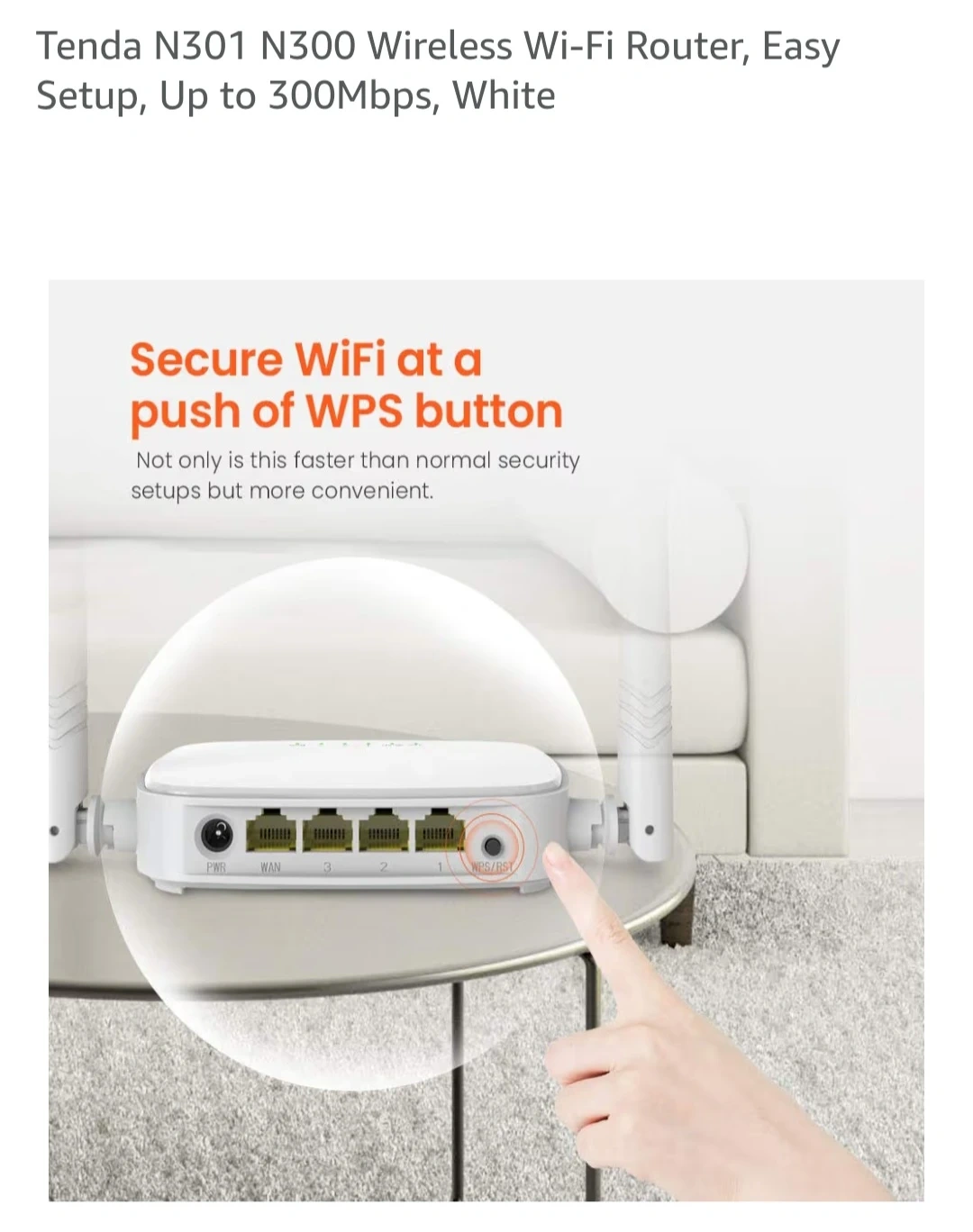 Tenda N301 N300 Wireless Wi-Fi Router, Easy Setup, Up to 300Mbps, White