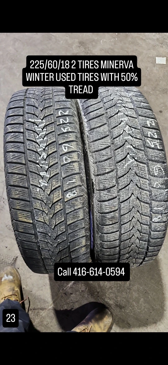 Selling a pair of Minerva winter tires, size 225/60/18. They are used but still have about 50% tread left, ready to get you through the winter season!