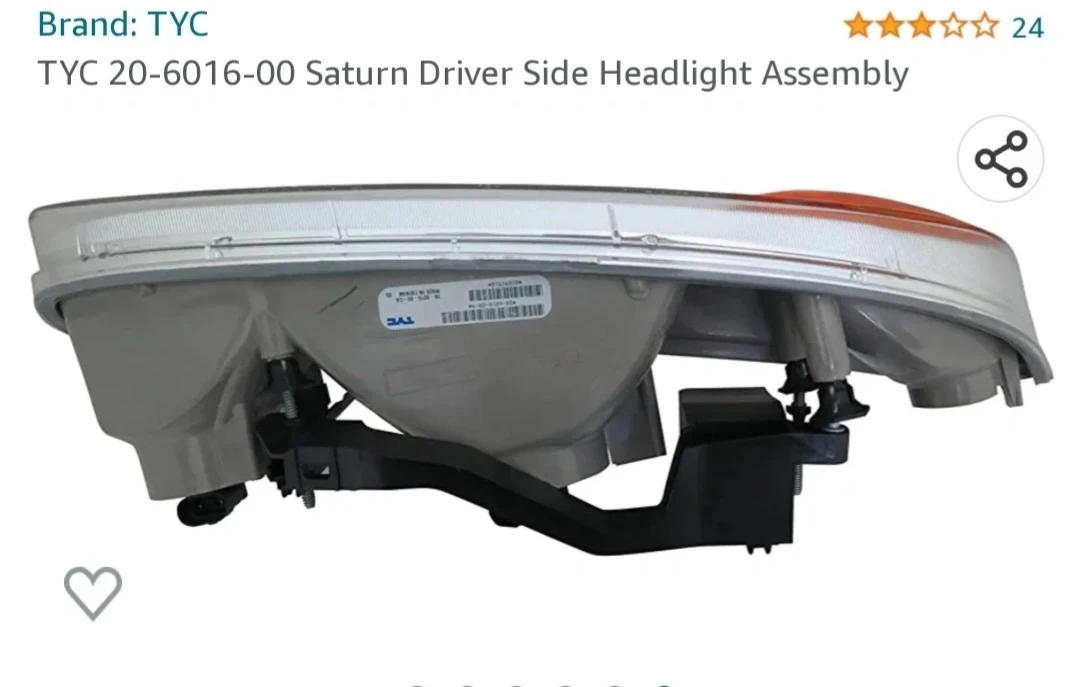 TYC 20-6016-00-1N Saturn Driver Side Headlight Assembly