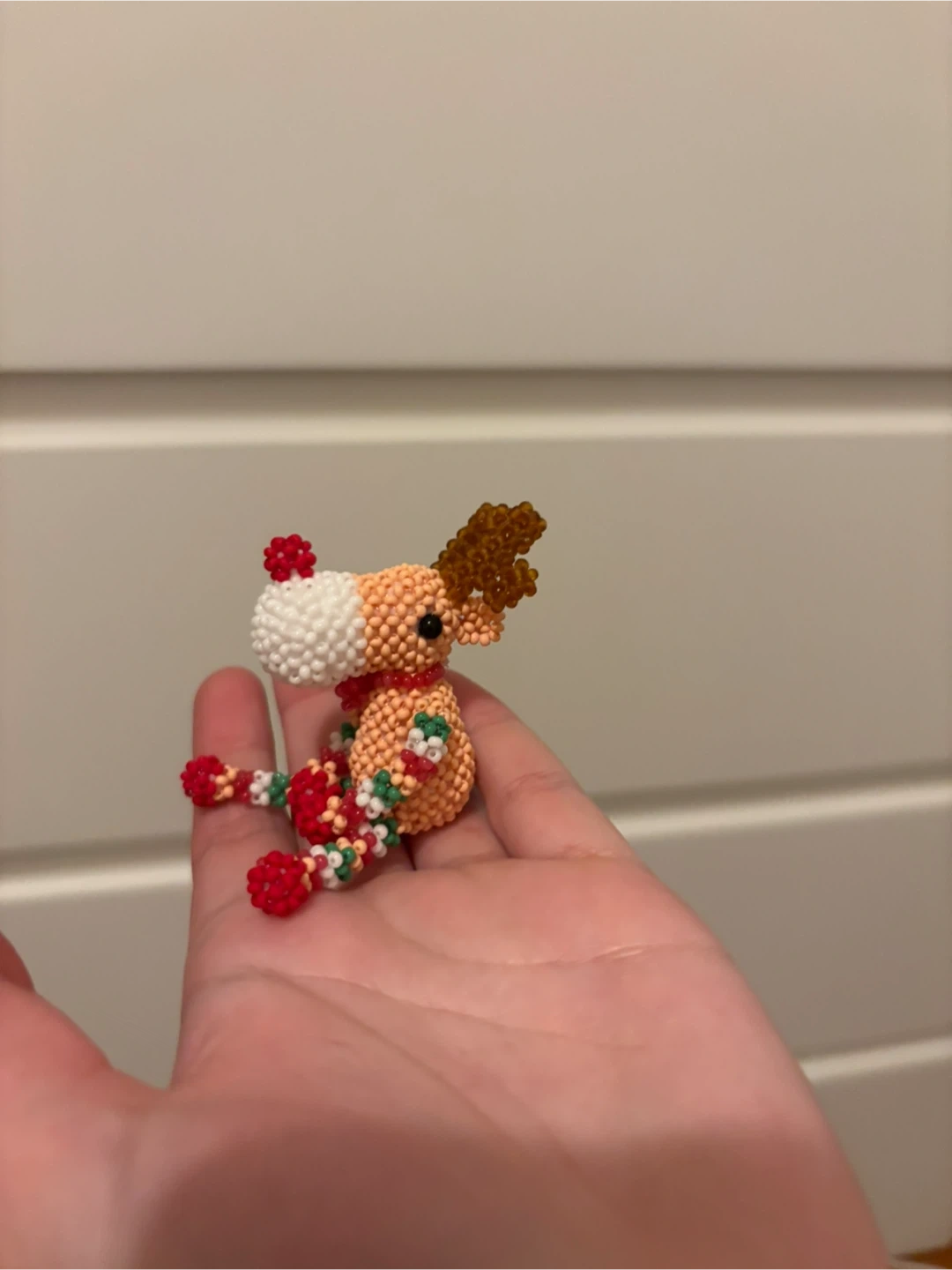 A cute beaded reindeer keychain, perfect for the holidays! It's in great condition and ready to add some festive cheer to your keys or bag
