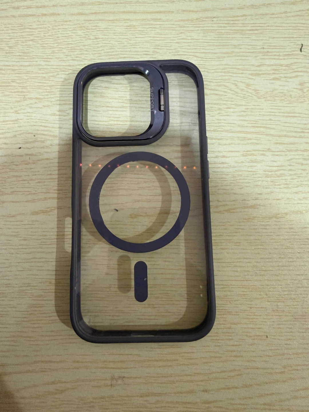 I have a variety of iPhone cases available. There's a clear case with a blue MagSafe ring, a brown leather case (brand SUTENI), a North Face case, a SO COOL case, and a BMW M Performance case