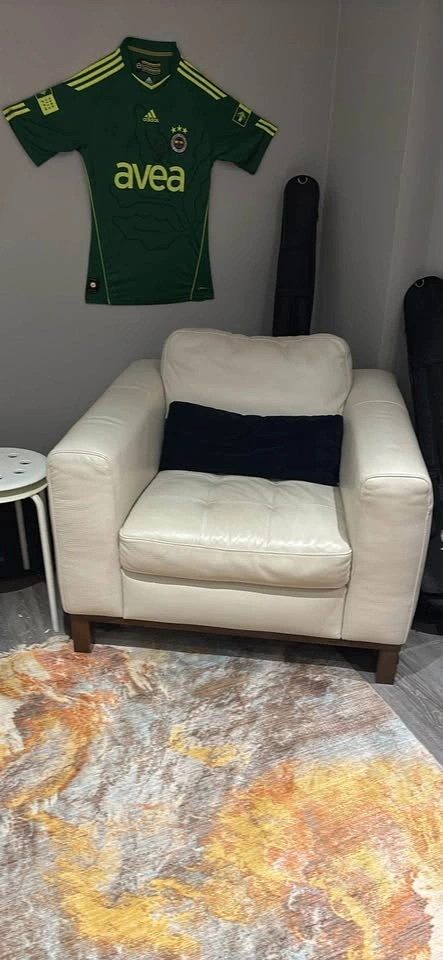 They are made of white genuine leather and are in expected condition. That’s to say 1 minor scratch on one and little scuffs on the other but nothing major for a set of used couches.