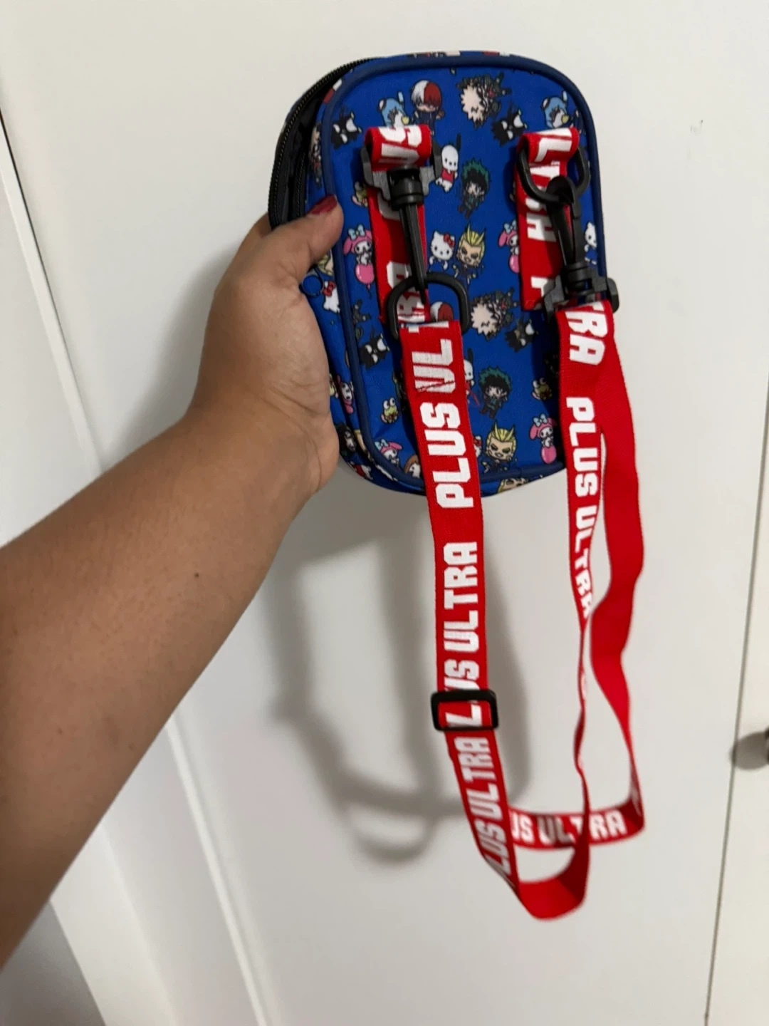 Super cute My Hero Academia and Hello Kitty crossbody bag! It features a fun print and a red "PLUS ULTRA" strap. Perfect for carrying your essentials in style