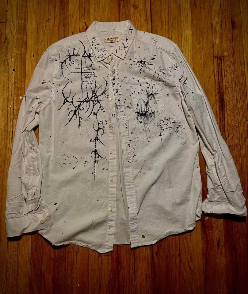 Buy & SellCrazy Custom Button-UpCrazy Custom Button-Up$50Painted on Designs (won’t wash off) Custom Distressing Size: L Color: White Can Do Any Custom WorkWHERE TO MEETCheck LocationView MapSELLERTheoDundarave150 reviews0 chats·0 favorites·9 views