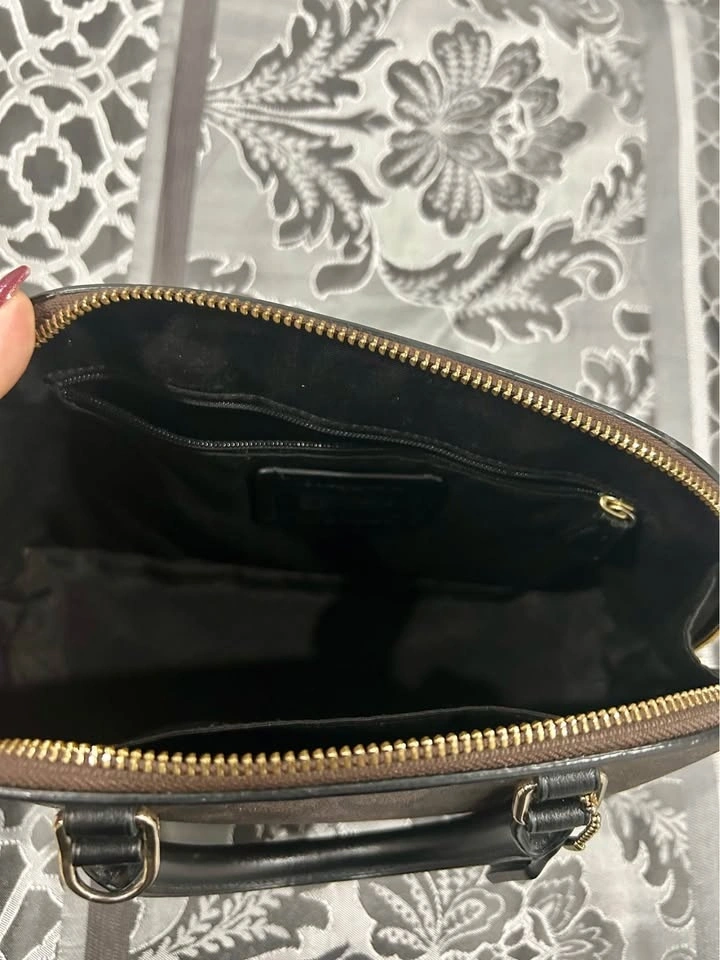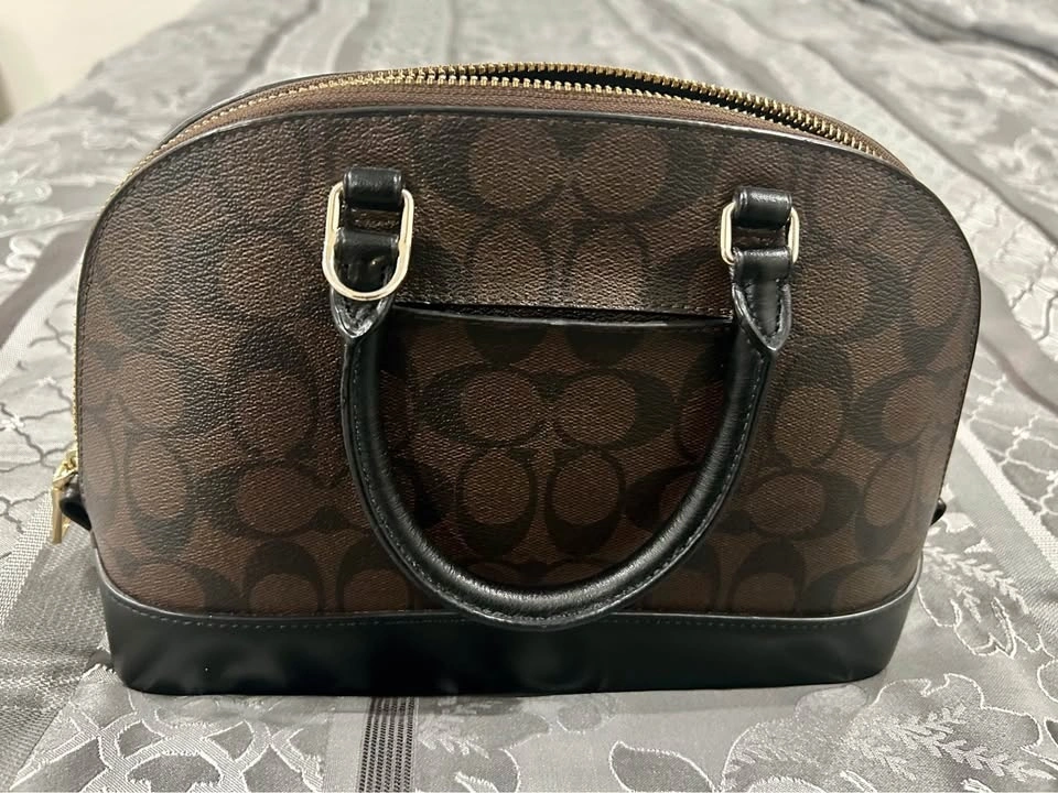 Beautiful Coach Mini Sierra Satchel in signature canvas with matching Coach Medium Envelope Wallet in brown/black colour scheme. Both are in excellent used condition and come from a smoke-free home.