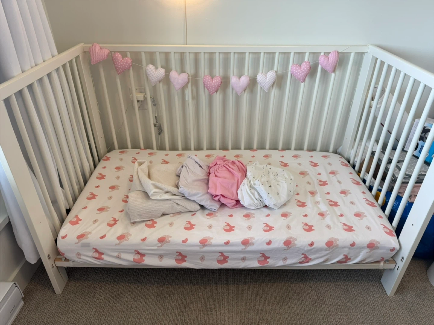 Retail price for a new crib: $200 + taxes + delivery fees (Ikea link: https://www.ikea.com/ca/en/p/gulliver-crib-white-80248525/)