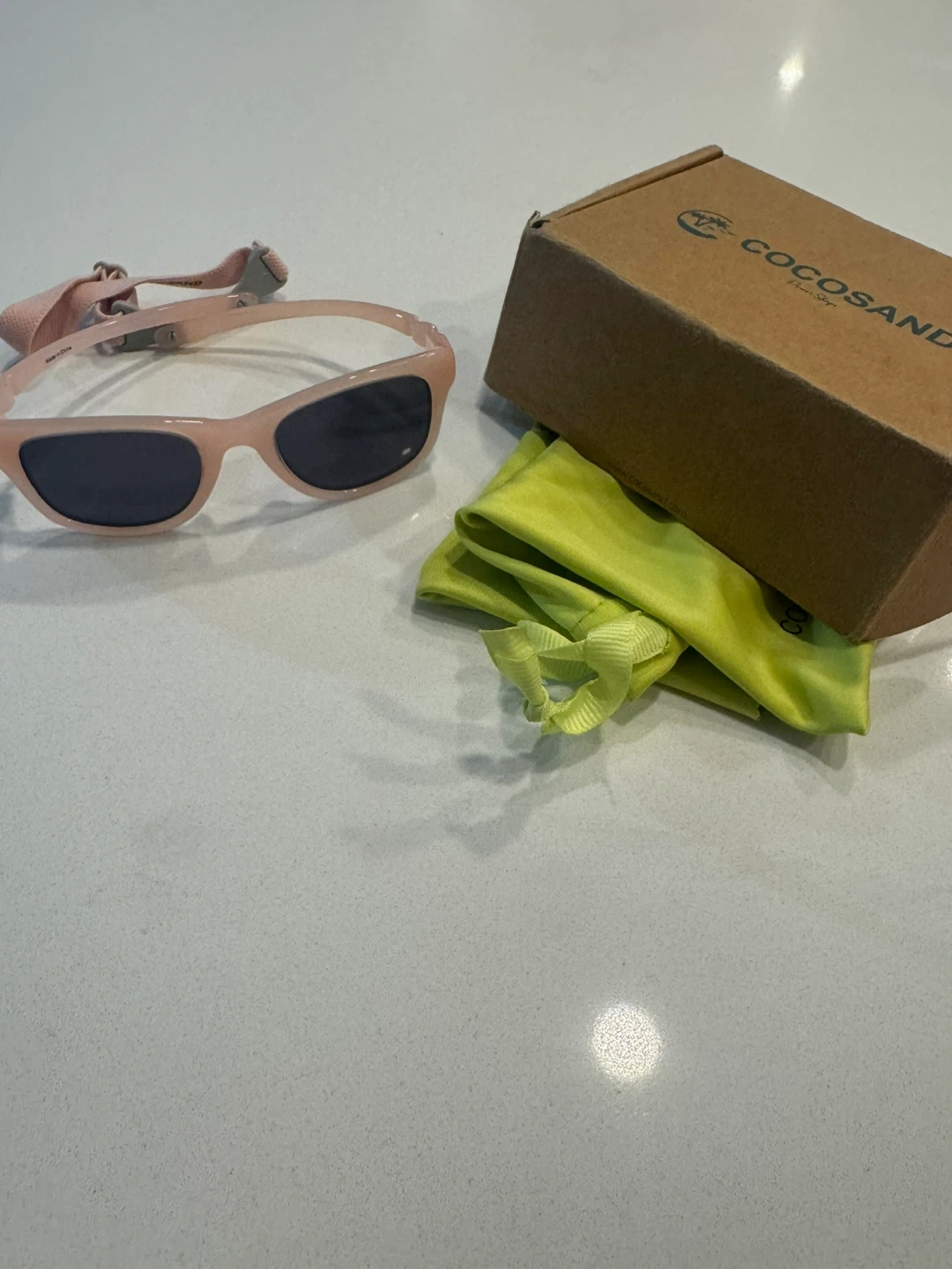 These adorable COCOSAND baby sunglasses are in great condition and ready for a new little owner! 100% UV protection. 0-24 months. They come in a cute pink colour and include the original box and a soft, vibrant green cleaning cloth. Perfect for protecting your little one's eyes from the sun!