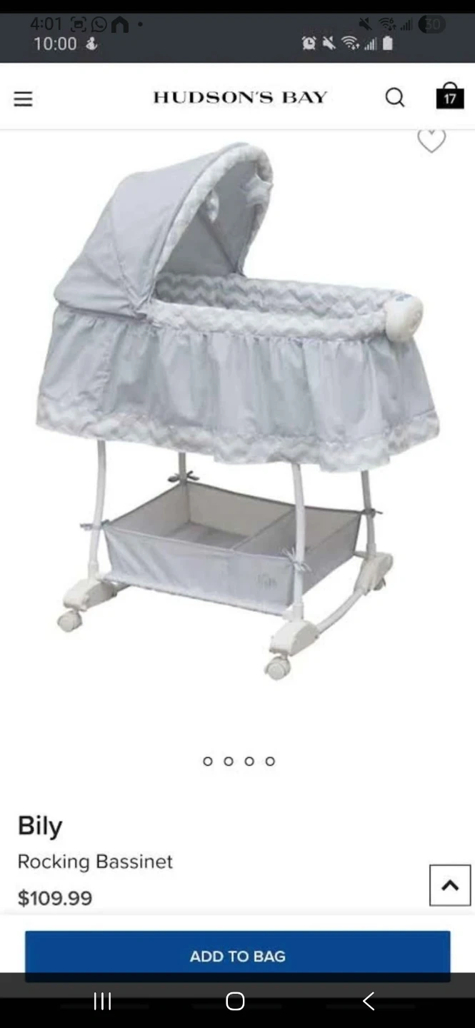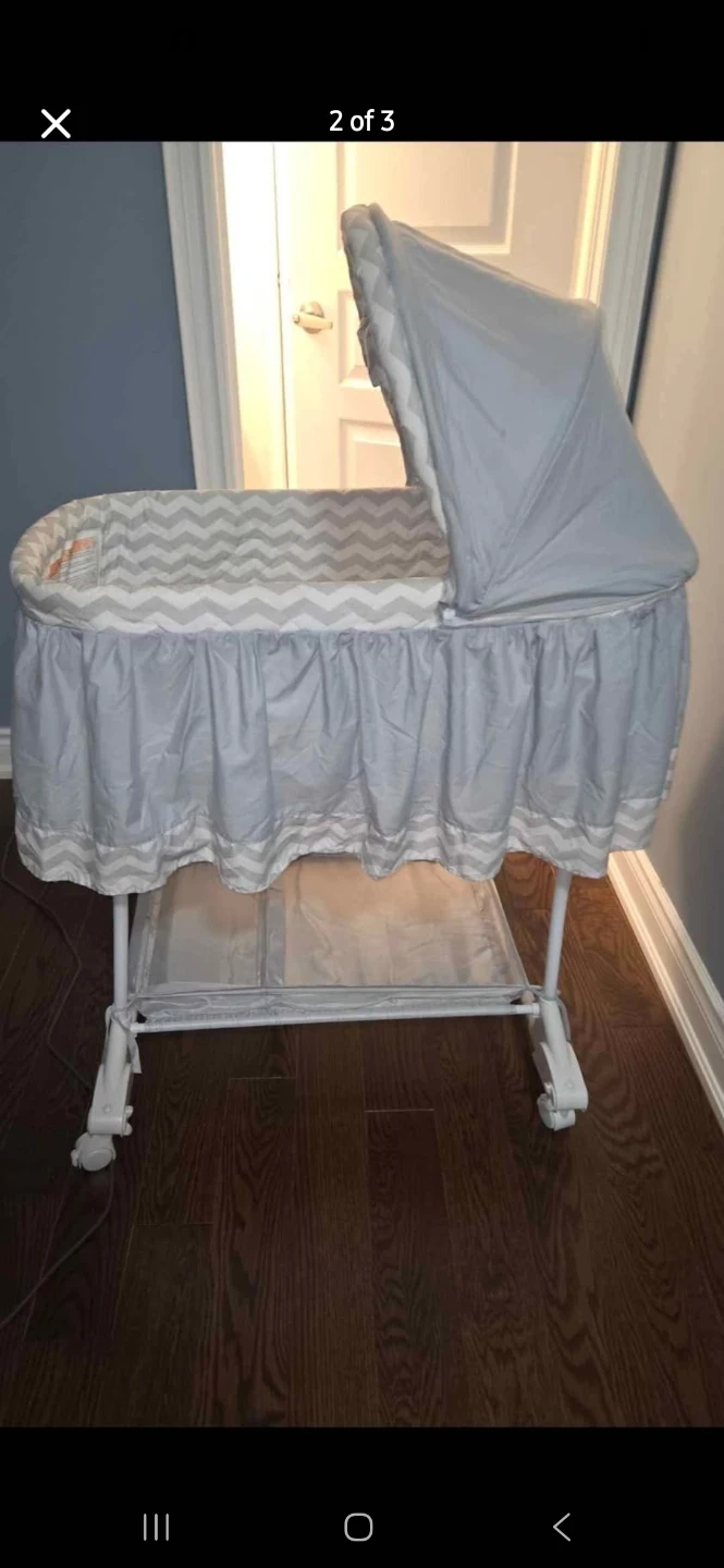 Selling a Bily rocking bassinet! It's perfect for keeping your little one close by during those early months. It's in great shape and ready for a new family. Originally bought for $109.99 at Hudson's Bay!
