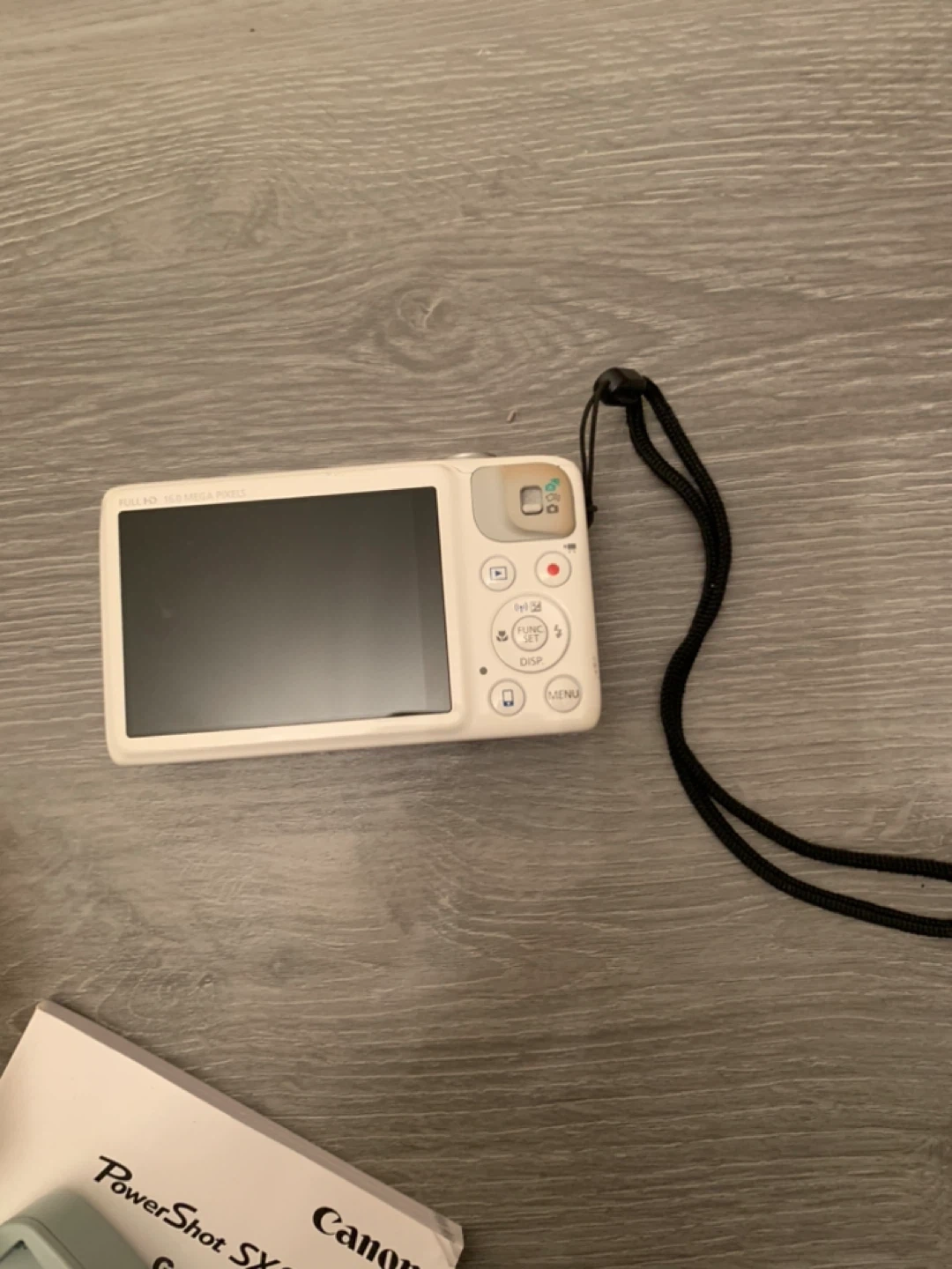Selling a Canon PowerShot SX600 HS digital camera in white. It comes with the original box and all included components, such as the battery charger, a 16GB Lexar memory card, and the user manual. Great for capturing memories!