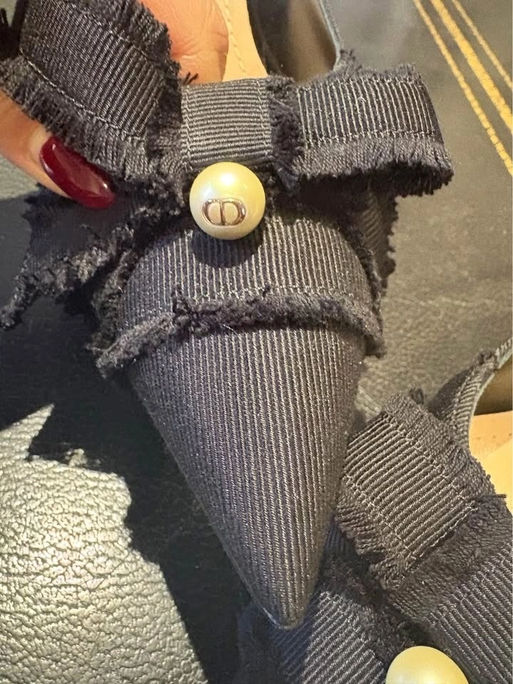 ADIORABLE PUMP BLACK FRINGED GROSGRAIN Size 41. No box - As is. Bow on the front embellished with a CD signature white resin pearl. 8-cm (3-inch) heel and pointed toe. Purchased from Dior Online - Receipt available upon request.