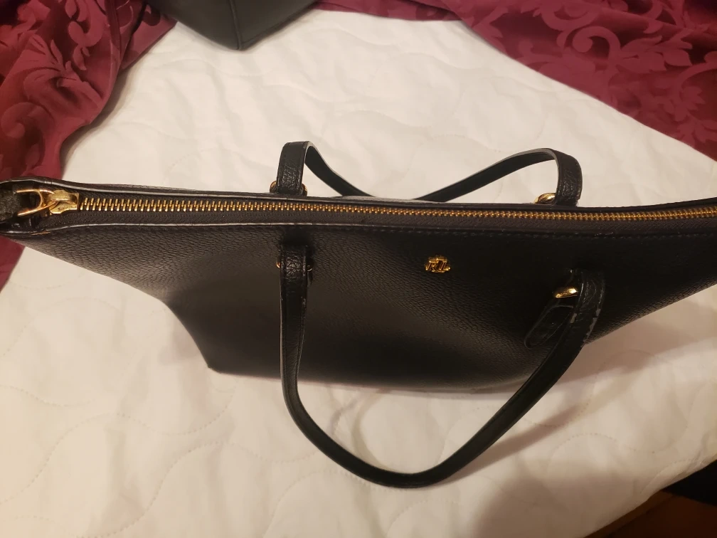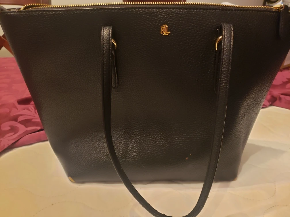 Selling a Ralph Lauren black leather tote bag! It's a stylish and practical bag for everyday use. There are some signs of wear, as you can see in the photos, but it still has lots of life left