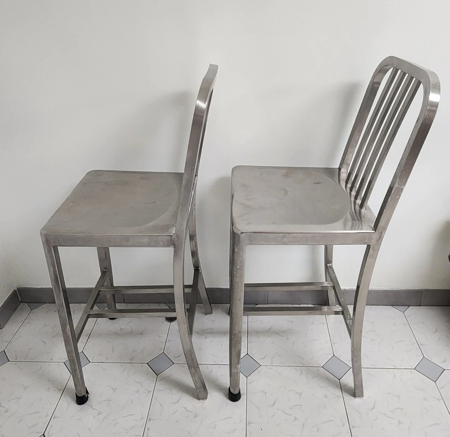 Selling a set of two stainless steel counter height bar stools! They are in good condition and ready for a new home. Perfect for a kitchen island or bar area.