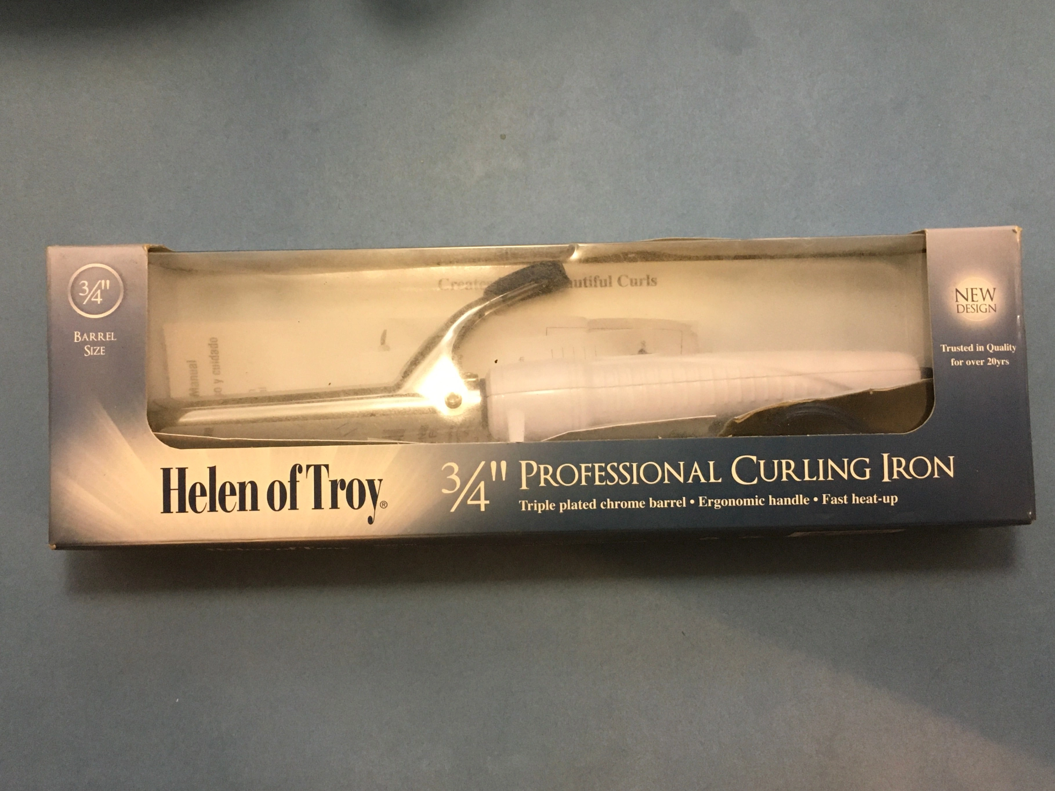 Selling a brand new Helen of Troy 3/4" Professional Curling Iron! It features a triple plated chrome barrel, ergonomic handle, and fast heat-up. The box says it's trusted in quality for over 20 years