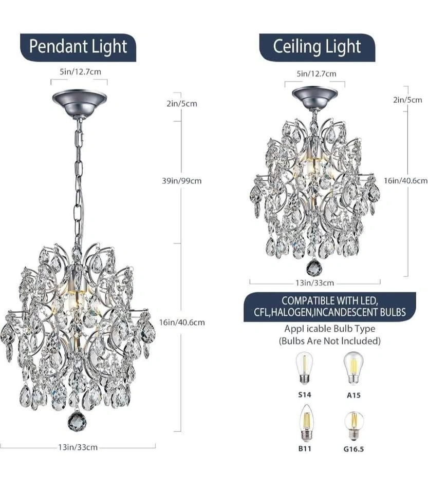 Bestier Modern Pendant Chandelier Crystal Raindrop Lighting Ceiling Light Fixture Lamp for Dining Room Bathroom Bedroom Livingroom entryway 1 E26 Bulbs Required D13 in x H16 in