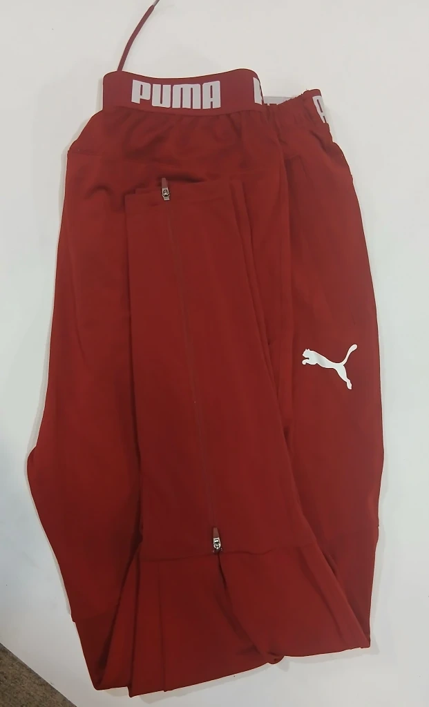 Selling a pair of Puma Arsenal training pants in size L. They're in great shape and ready for a new owner! The pants feature the Arsenal logo and the Puma logo. They are red with a white Puma waistband.