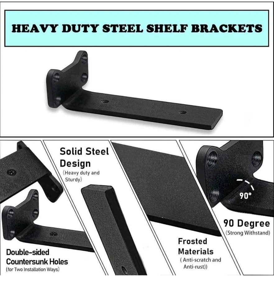 Shelf Brackets Heavy Duty Industrial L Shelf Bracket - 0.2 Inch Thick Premium Solid Steel Shelf Supports, Black Rustic Wall Brackets for Shelves - 10 Inch Floating Shelves brackets (6 Pack)