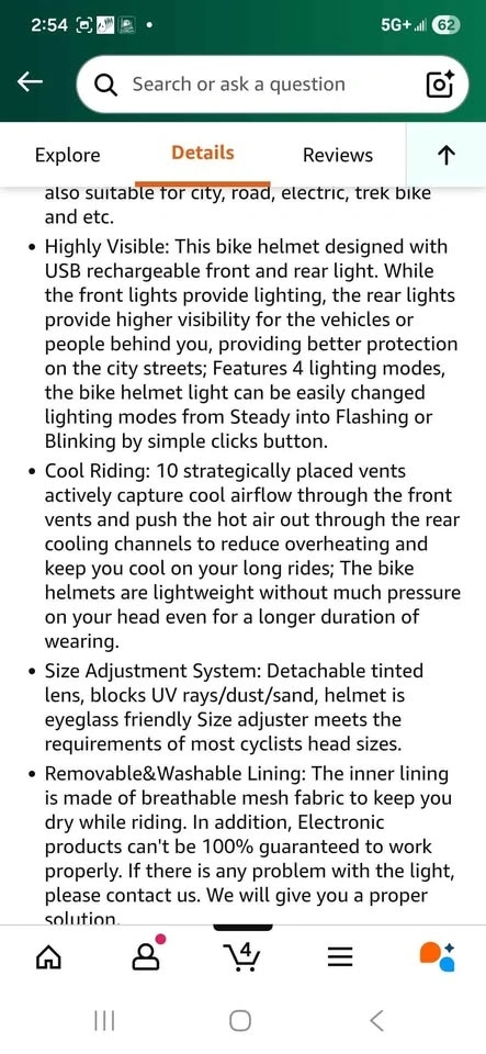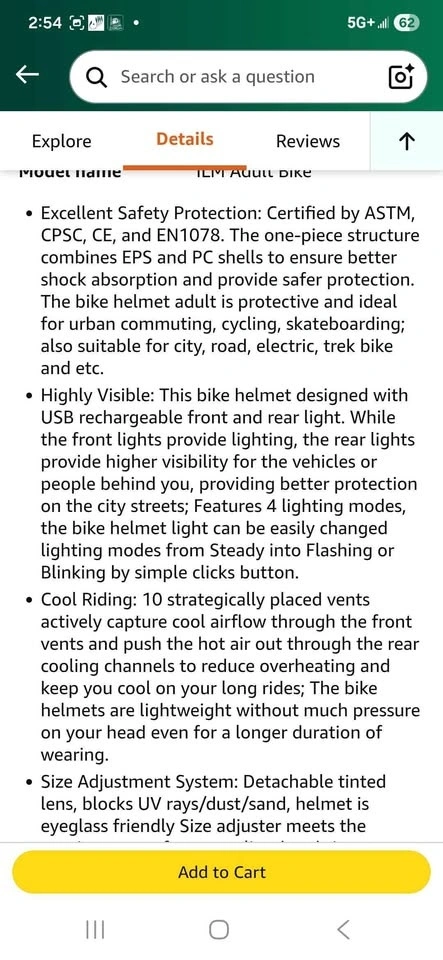 ILM Adult Bike Helmet with USB Rechargeable LED Light-Med