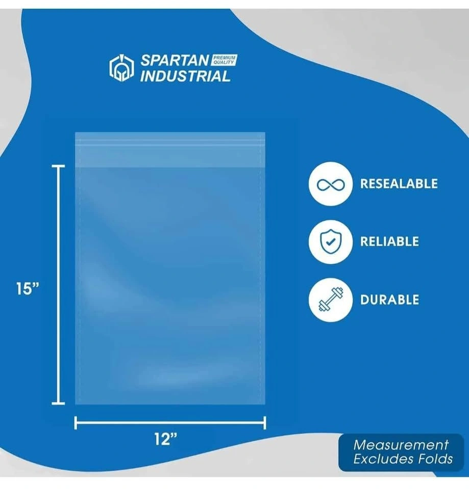 Spartan Industrial - 12" X 15" (1000 Count) Crystal Clear Resealable Cello Poly Bags for Packaging - Self Seal & Reinforced. New in box.