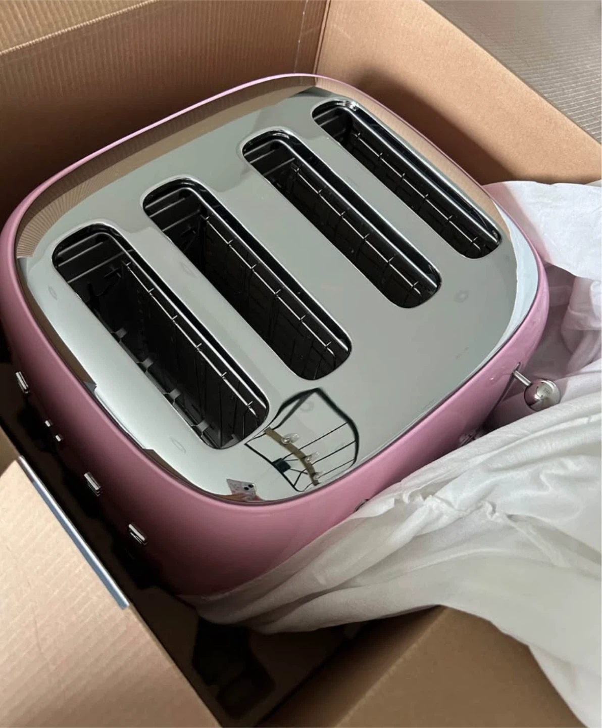 Selling a lovely pink Smeg 50s Retro Style Wide Slot Pop-up Toaster! It's a 4-slice model in great condition. It comes with the original box and all components. Originally bought for $369.99. It's a great addition to any kitchen!