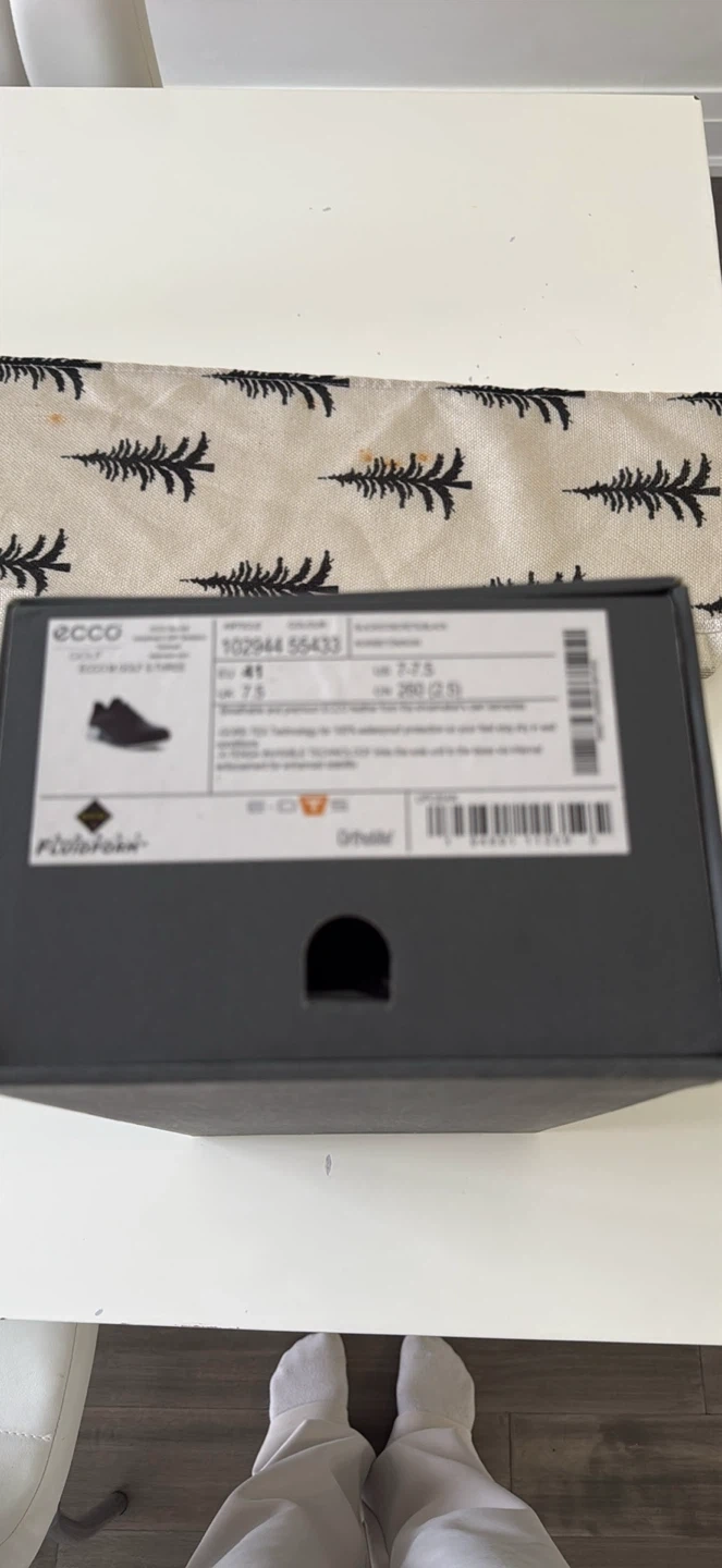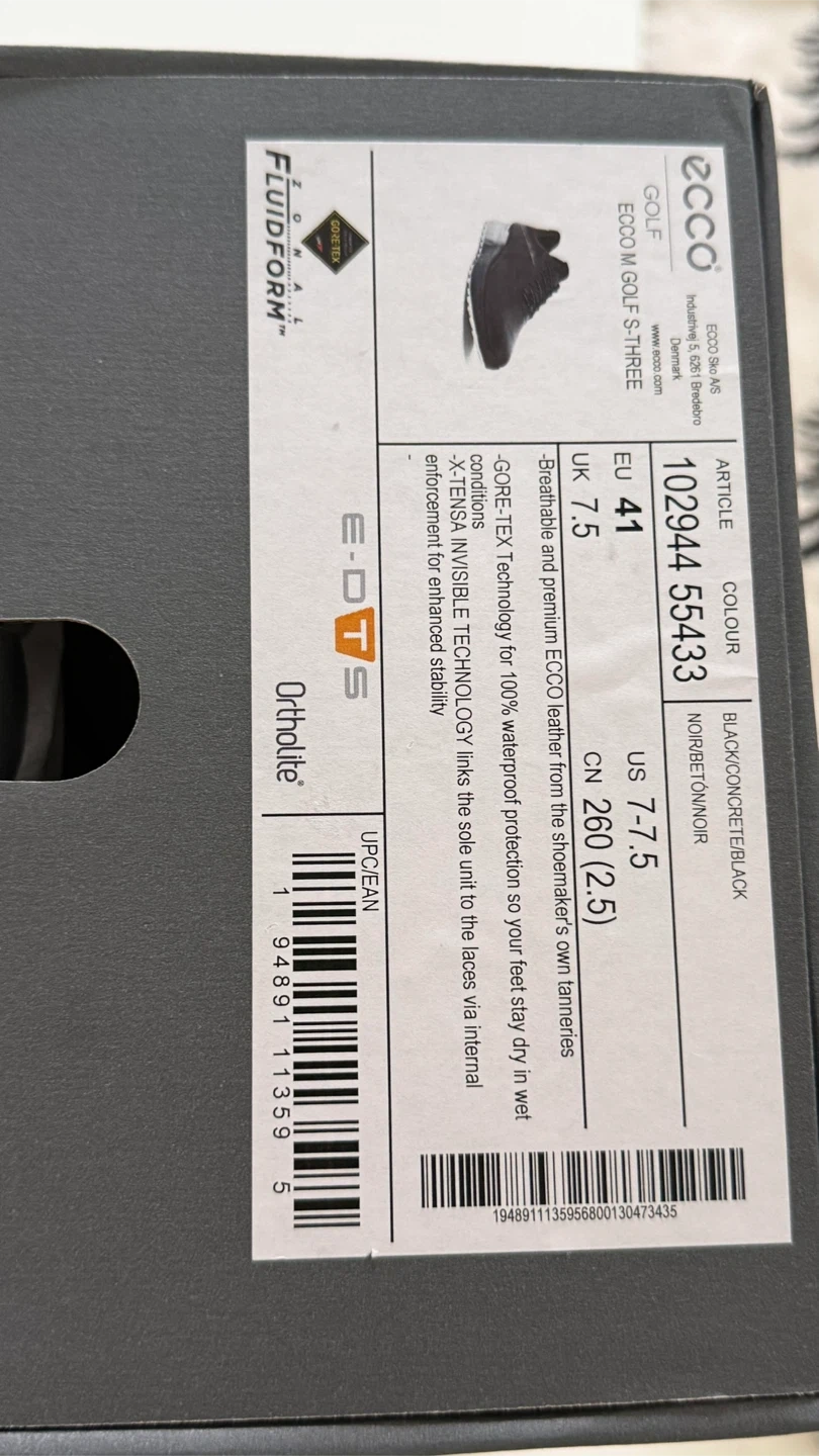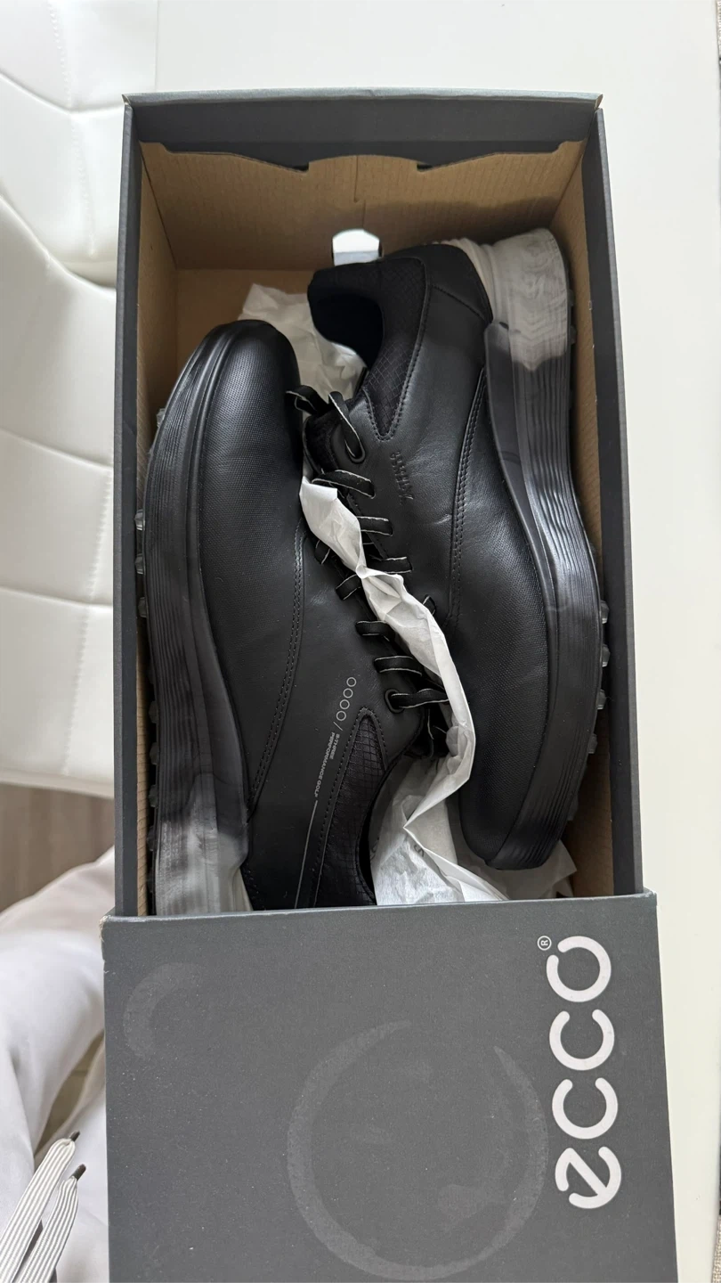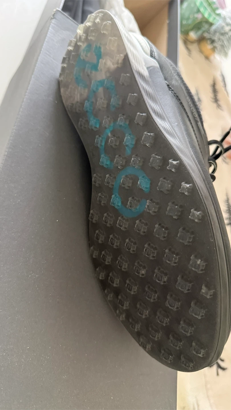 These Ecco Golf Biom Cool Pro shoes are brand new and ready for the green! They come in their original box. The size is US 7-7.5 and the colour is Black/Concrete/Black.