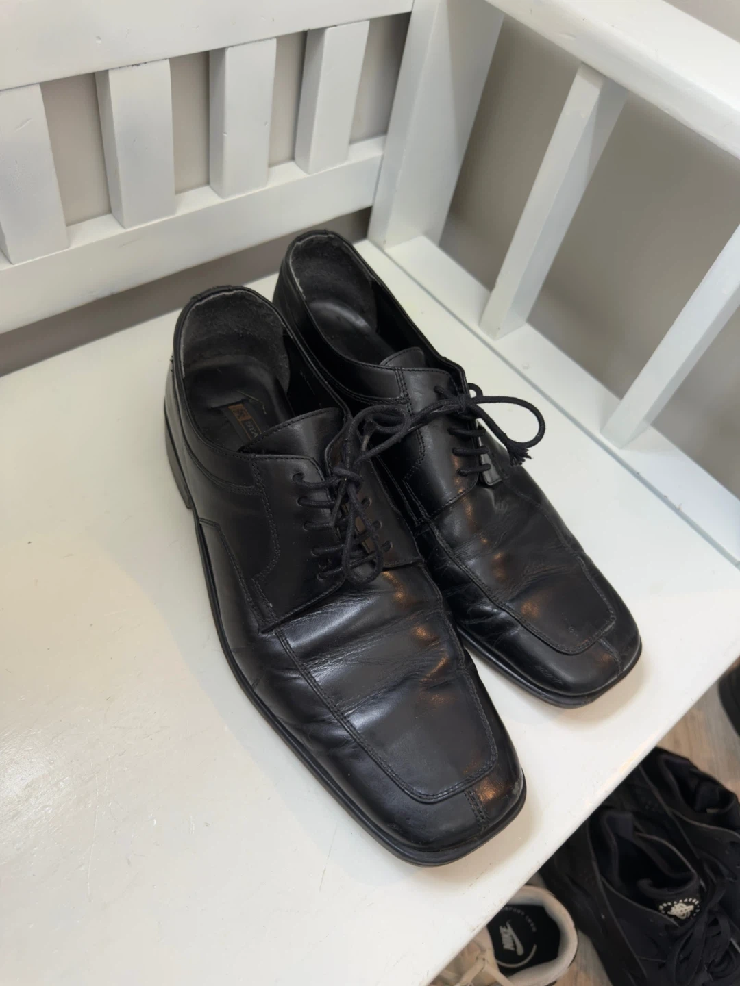 Selling a pair of Stacy Adams dress shoes in black leather. They are size 11M. Please take a look at the photos to see the condition!