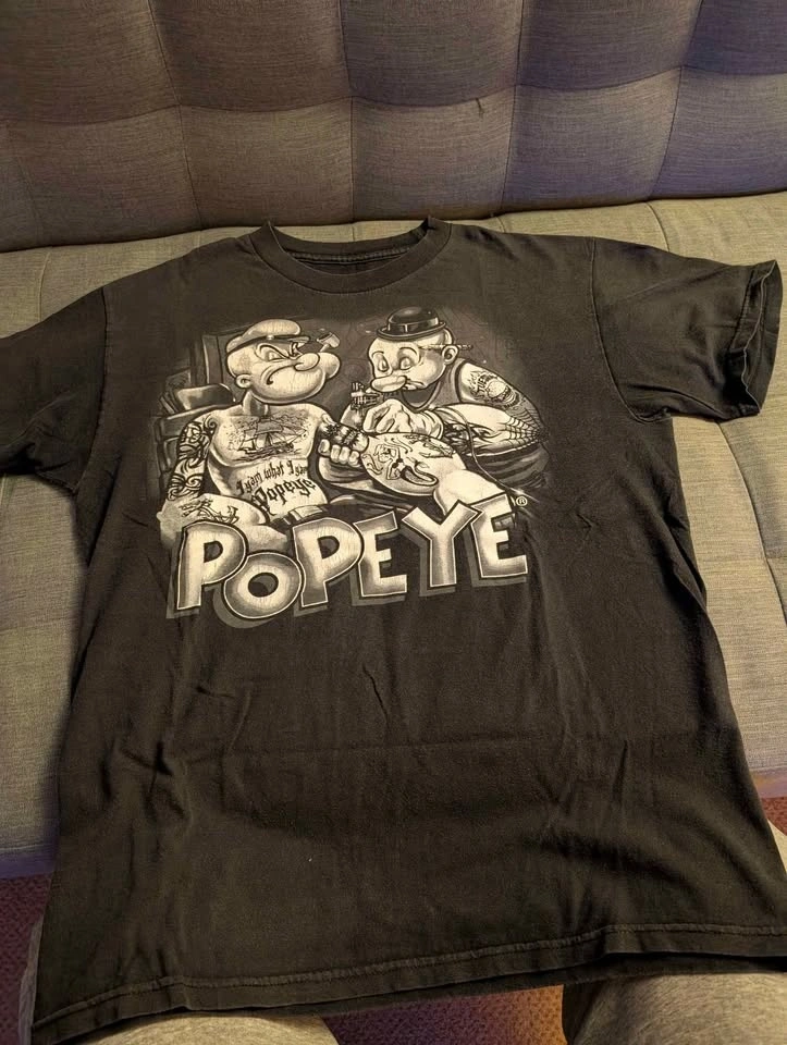 Buy & SellPopeye getting tattooed t-shirtPopeye getting tattooed t-shirt$10Selling my Popeye t-shirt.SizeMWHERE TO MEETCheck LocationView MapSELLEREugeneWest Bend26023 reviews0 chats·0 favorites·3 views