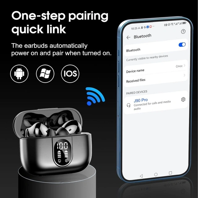 INFO SUMMARIZED IN PICTURES NEW IN BOX PICK UP IN SCRABOROUGH OR CAN SHIP IF YOU SEE IT ITS AVAILABLE Bluetooth 5.3 and Seamless Pairing: Our wireless ear buds adopt brand new Bluetooth 5.3 technology, providing an impressive 15m ultra-wide range and a robust connection, allowing you to enjoy music and calls no matter where you are without worrying about connection interruption. Equipped with magnetic Hall effect technology, the bluetooth earphones will automatically connect to your device upon opening the charging case after the initial pairing, which saves time and is very convenient. Immersive Stereo Sound and 4 ENC Mics: The J90 Pro noise cancelling earbuds are equipped with 13mm drivers, delivering stunning low-frequency depth, balanced mids, and clear highs, making every note and musical detail come alive and significantly enhancing your listening experience. Built-in 4 ENC mics, it effectively suppresses external noise, ensuring that your voice remains crystal clear during busy commutes, work, or workouts, providing unparalleled call quality and pure musical enjoyment. Up to 40 Hrs Playtime and Dual LED Display: The Csasan wireless headphones offer up to 8 hours of music playback on a single charge (only 1.5 h). The convenient charging case provides an additional 4 charges, totaling up to 40h of continuous playback. The LED digital display keeps you informed of the battery status of both the ear buds and the charging case, ensuring you stay aware of the remaining power during long-haul flights or busy workdays, and enjoy uninterrupted music without worry. Ergonomic Design and IP7 Waterproof: This Wireless earbuds adopts ergonomic and ultra-light design (a single earbud weighs only 4 grams), which can provide excellent stability and comfort even in long-term high-intensity training. Whether it is outdoor running or fitness training, this earbuds wireless bluetooth can accompany you to complete every challenge. Its IP7 waterproof rating effectively resists sweat and rain, ensuring that the in ear earbuds are durable in various sports environments. Touch Control and Broad Compatibility: The in ear headphones come with a responsive touch control panel that allows you to easily manage functions such as playback/pause, answering/rejecting calls, adjusting volume, skipping tracks, and activating voice assistants. Earphones wireless bluetooth are compatible with iOS, Android systems, and various Bluetooth devices, providing a comfortable and enduring user experience so you can enjoy music anytime, anywhere.