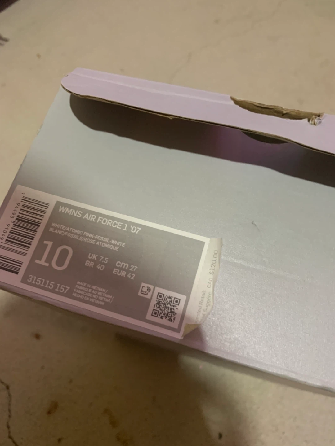 Selling a pair of Nike Air Force 1 '07 women's sneakers in size 10. The colour is white with atomic pink accents. These come with the original box. Originally cost $120.00