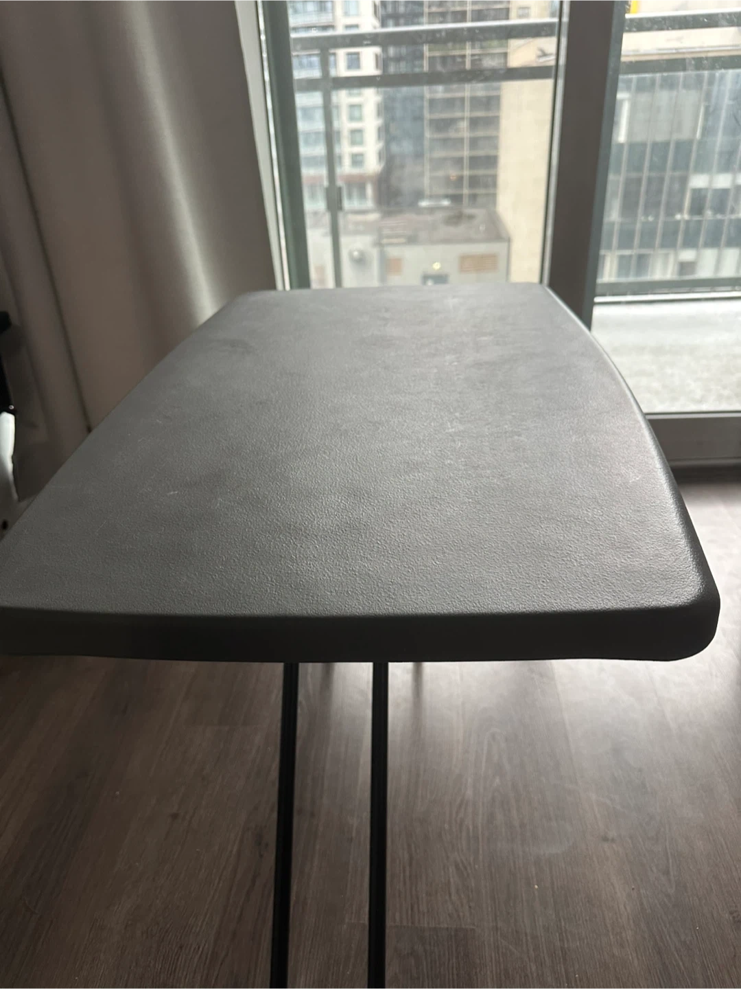 Selling a grey folding table. It's in good condition and perfect for extra space when you need it! Great for small spaces and easy to store when not in use