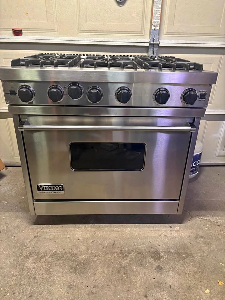 Viking range in really nice condition. It is fully functional, replaced due to kitchen renovation. Set to work with NATURAL gas.