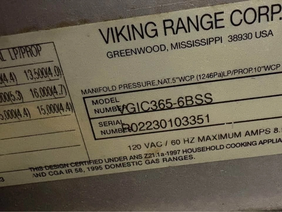 Viking 36” VGIC365-6BSS Natural Gas Range
