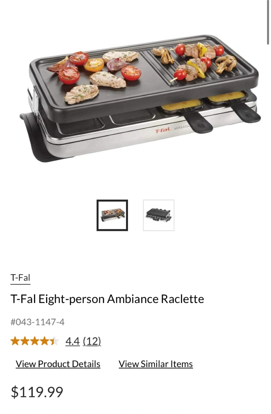 I'm selling a T-Fal Eight-person Ambiance Raclette grill! It's perfect for a fun dinner party with friends and family. This grill is in great condition and ready to use. Originally bought for $119.99