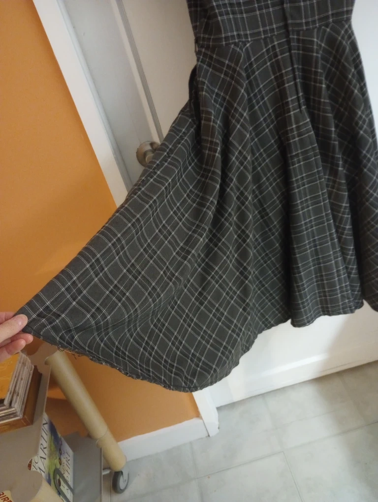 This is tagged a large, but please see measurements below (taken flat, unstretched) and compare them to a similar garment that fits you well (double for circumferences where applicable): Pit to pit 19" Side seam to side seam at waist 15.5" Estimated hip free Back length 43" Ours is a clean smoke and pet-free place. Meet-up may be possible at a subway stop if my fluctuating mobility permits. Shipping is possible at buyer's expense. Note that I have several such dresses in M-XL size. Making room for kaftans and embracing menopause. Rock on.