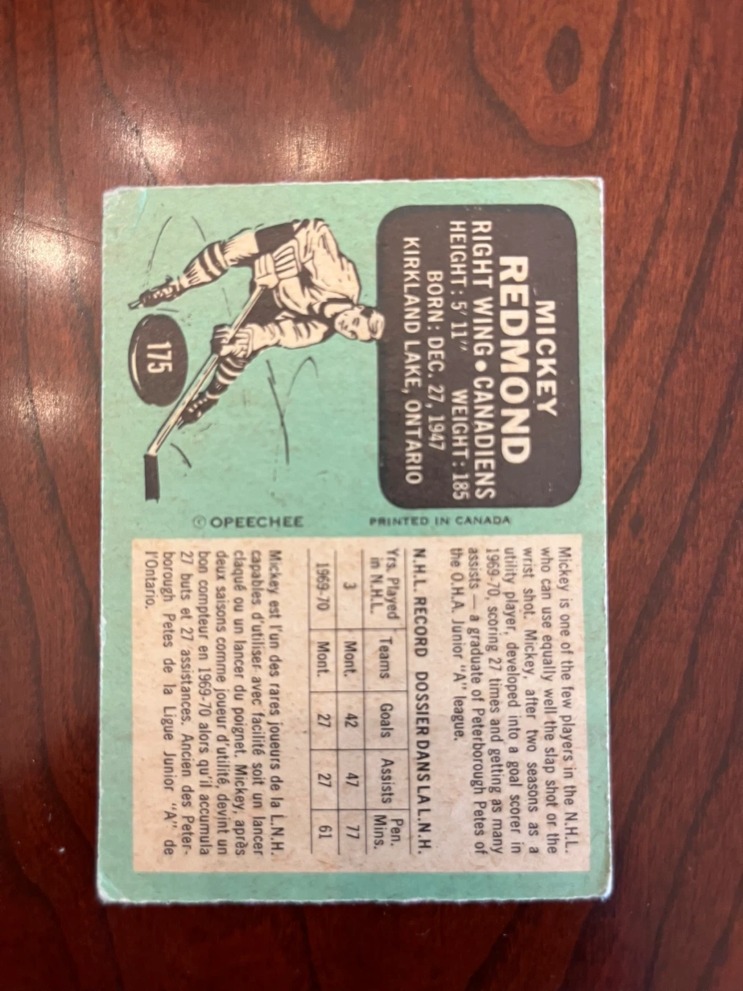 MICKEY REDMOND 1970, O-PEE-CHEE, #175, MONTREAL CANADIENS