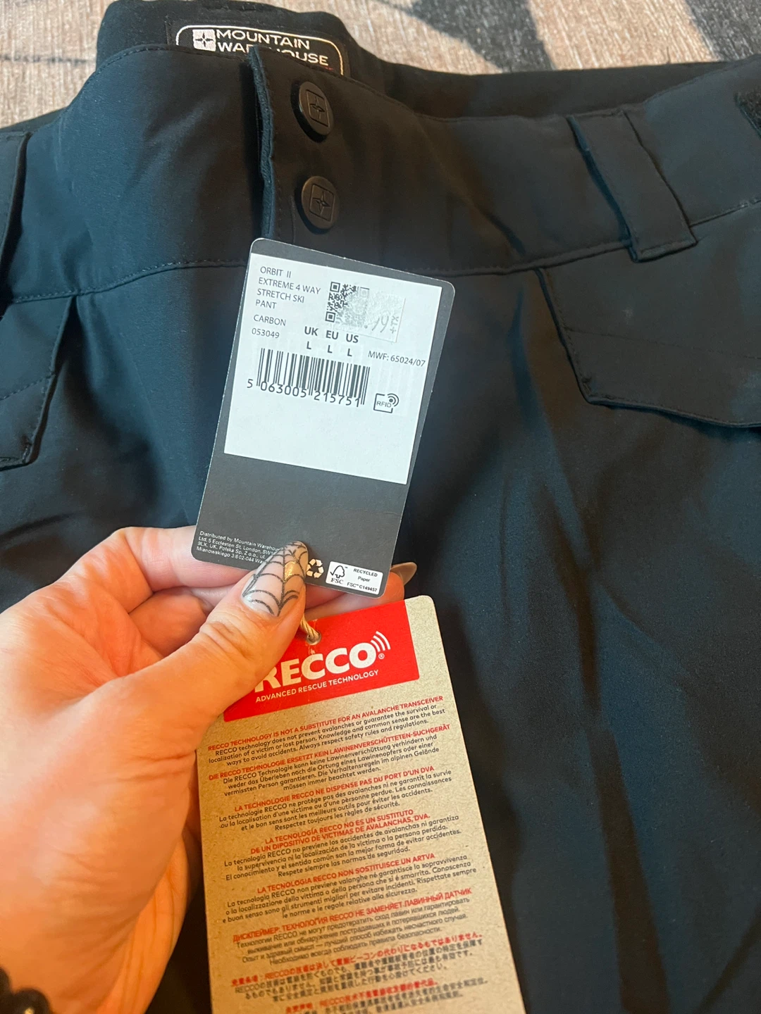 These Mountain Warehouse Orbit II ski pants are brand new never used! They are a size L and come in a sleek black colour.