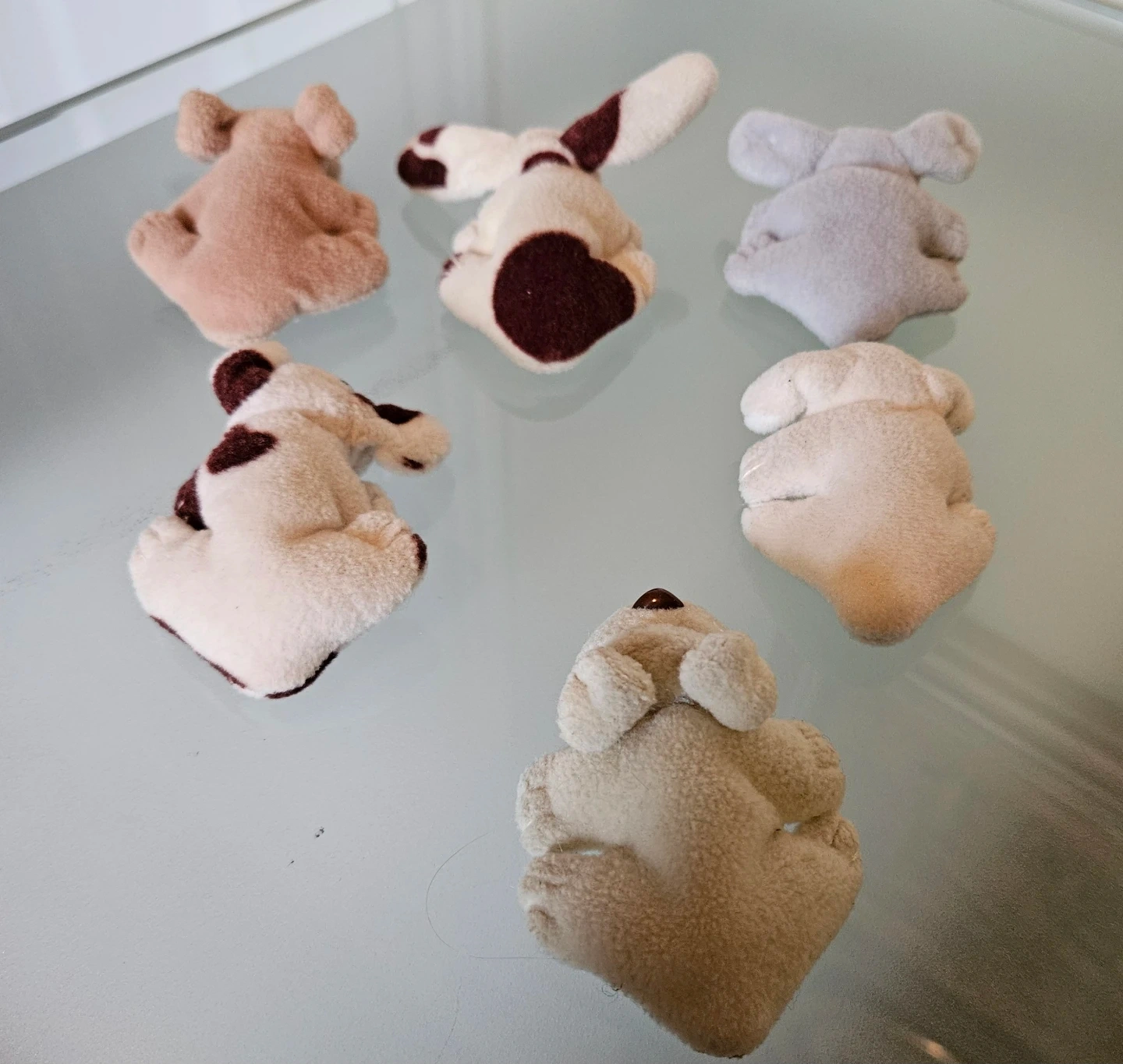 Here's a cute set of six plush puppies. They're in great condition and ready to brighten your day.There are a variety of colours and styles, so you're sure to find one you love!