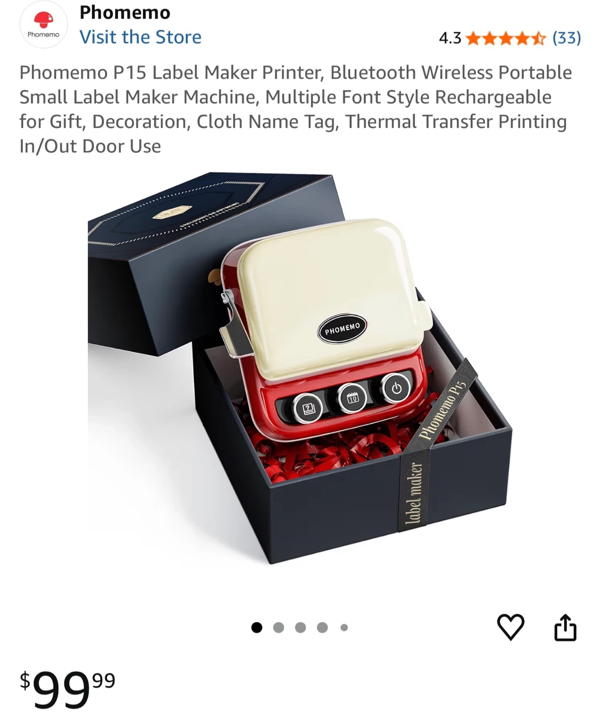 Selling a brand new Phomemo P15 Label Maker Printer! It's a Bluetooth wireless portable small label machine, perfect for gifts, decorations, cloth name tags, and thermal transfer printing for both indoor and outdoor use. It comes in its original box. Retails for $99.99!
