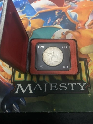 Celebrate a piece of Canadian history with the 1873-1973 Centenial RCMP GRC Canadian Dollar. Struck in honor of the Royal Canadian Mounted Police's centennial anniversary, this coin is a tangible link to Canada's storied past. It's a must-have for collectors and enthusiasts of Canadiana, featuring iconic imagery that encapsulates the spirit of the RCMP. Crafted in Canada, this uncirculated dollar is a tribute to the country's rich heritage and the esteemed reputation of its law enforcement. Without certification, it offers an authentic charm for those who appreciate coins with a story. Add this piece to your collection and own a snapshot of Canadian pride.