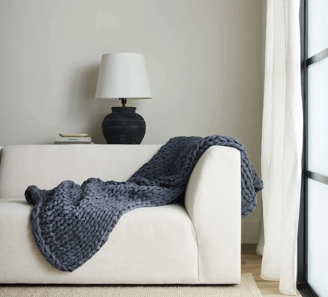 Experience ultimate comfort with this Silk and Stone hand-knitted weighted blanket, designed to provide a calming and restful sleep experience. This blanket has only been used twice and is like new, weighing 20 lbs in a tempest blue colour, is in great condition and ready to bring relaxation to your home. Specifications: * Brand: Silk and Stone * Type: Weighted Blanket 51” x 72” * Weight: 20 lbs * Colour: Tempest Blue * Material: Hand-knitted breathable cotton