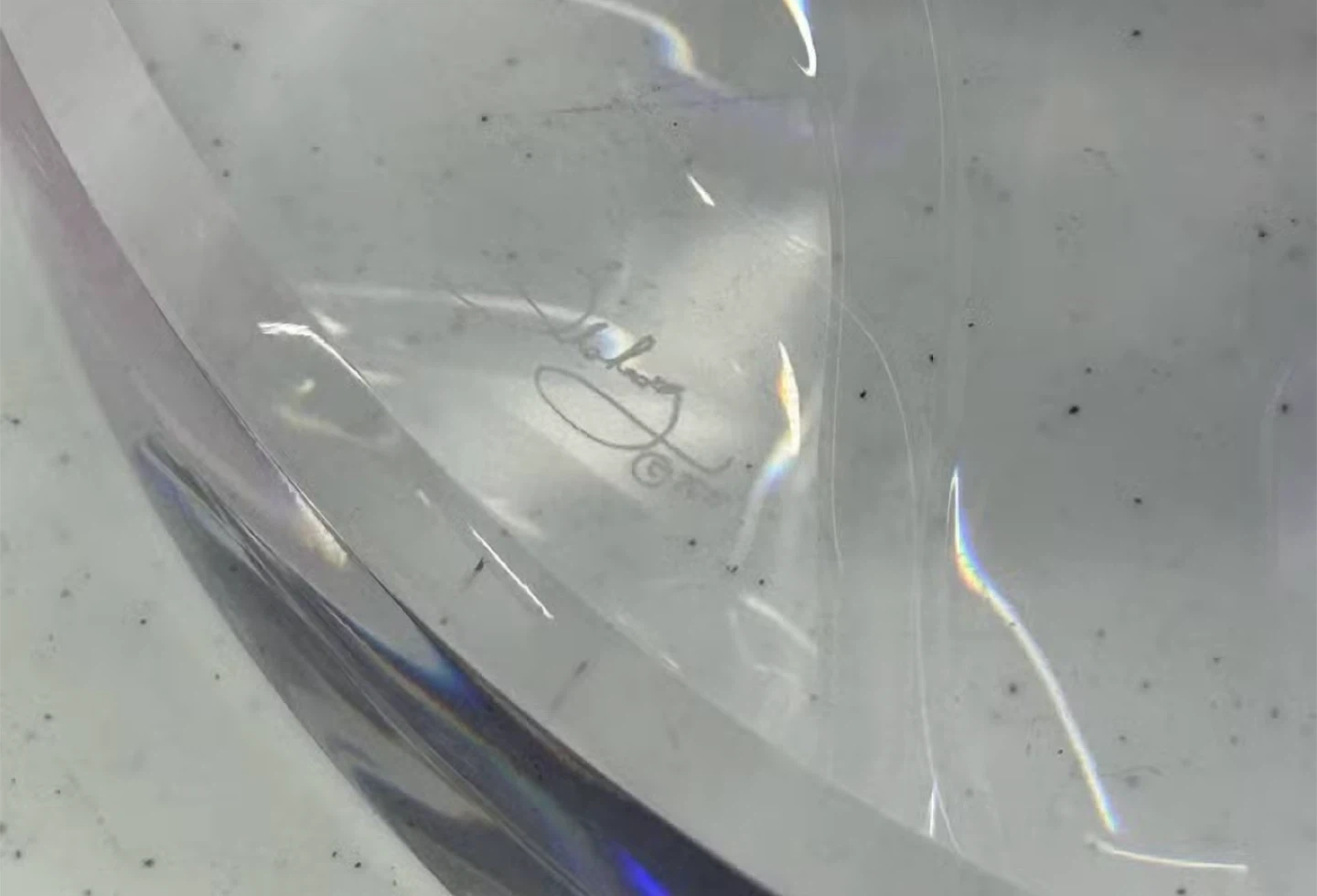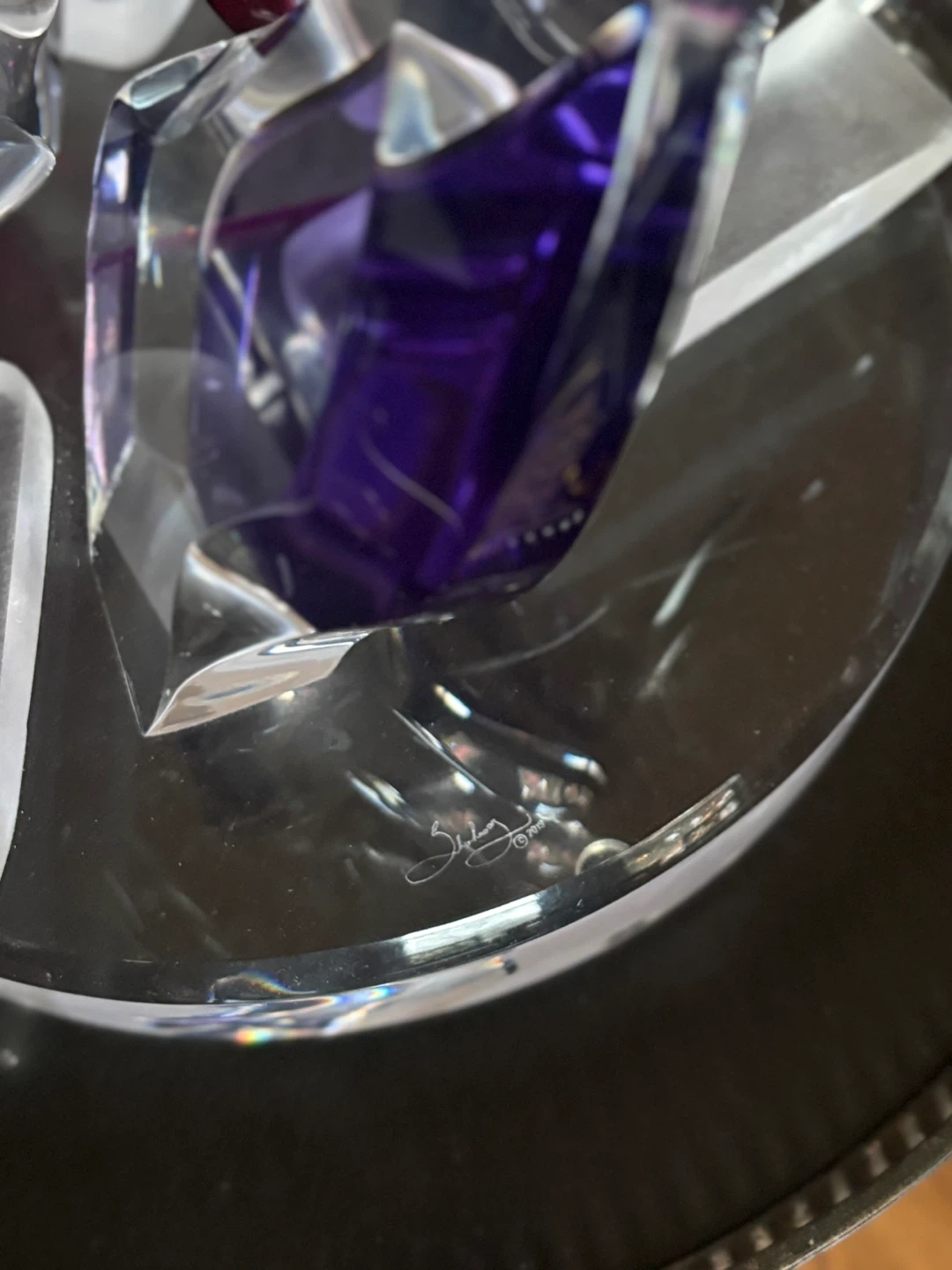 Beautiful crystal sculpture with purple and red accents. It's in great condition and ready to add a touch of elegance to your home!