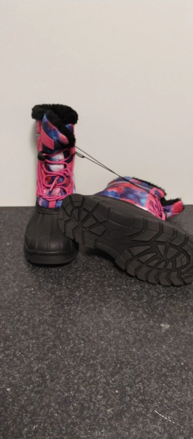 These Mountain Warehouse snow boots are perfect for keeping little feet warm and dry! They're a vibrant mix of pink and blue, and the size is US 3