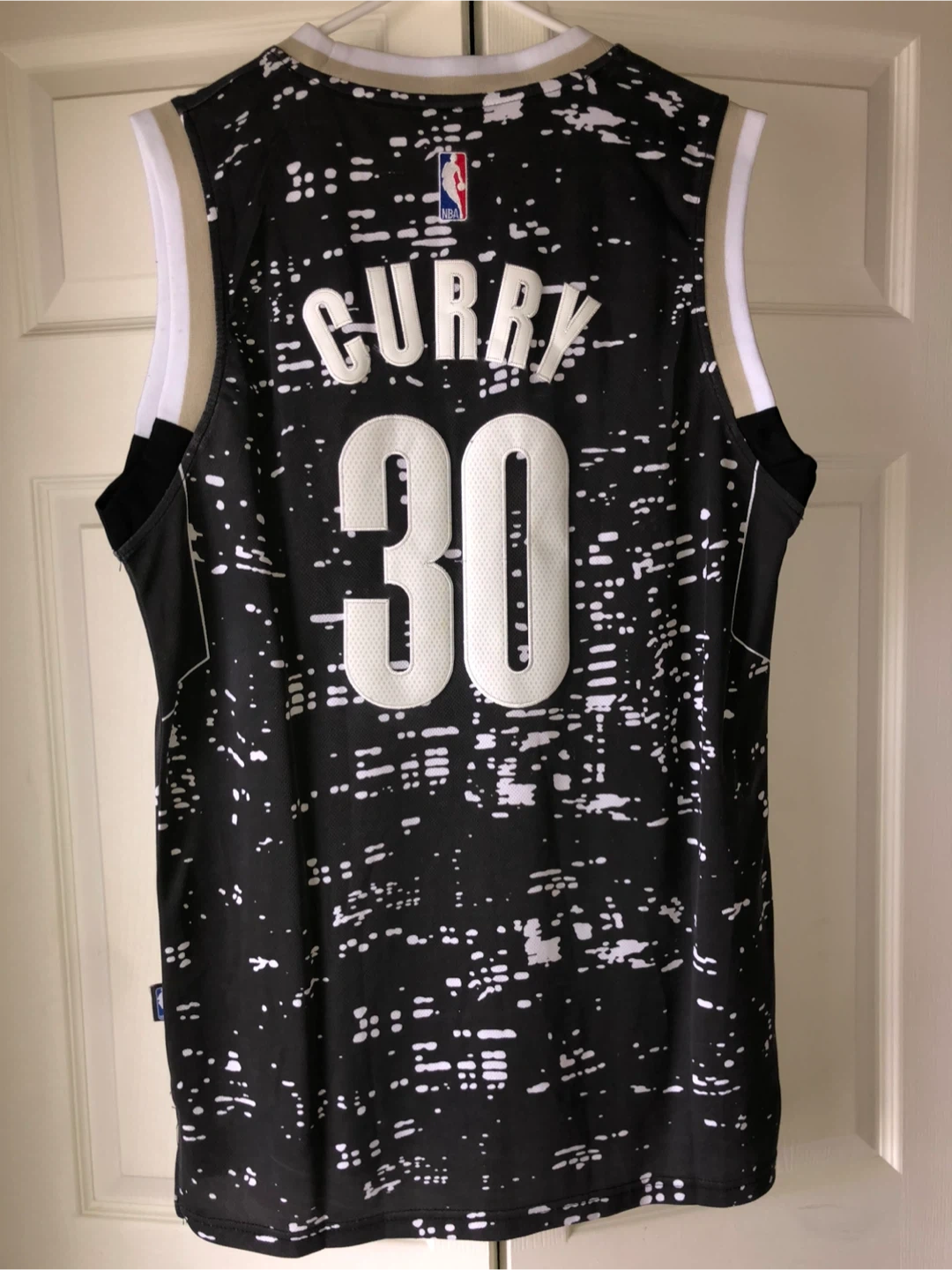 Selling an Adidas NBA Swingman Stephen Curry Golden State Warriors jersey in size L. It features the Golden State Warriors logo and Curry's number 30. I believe it’s the City Lights Edition, 2016-17 season.