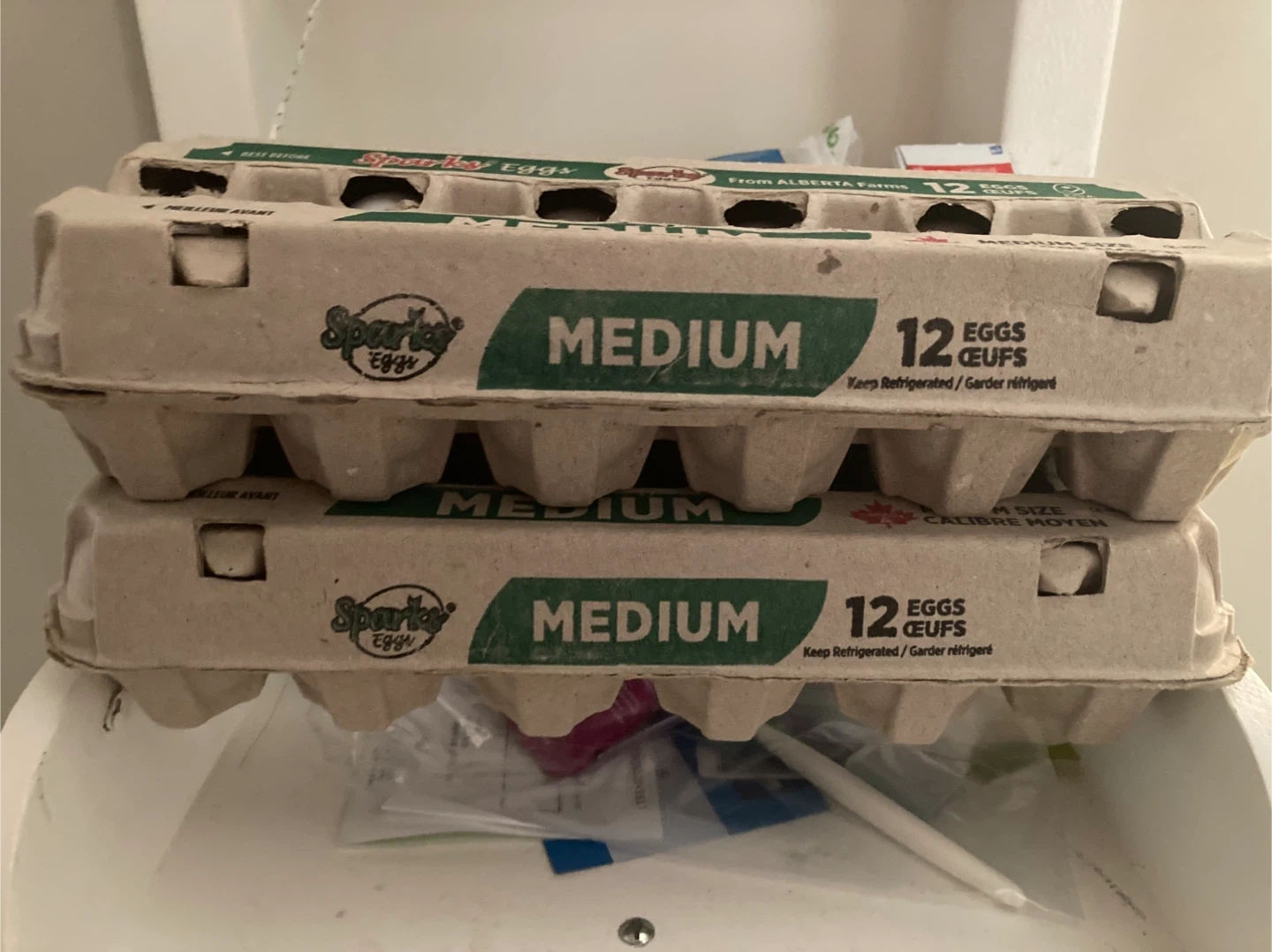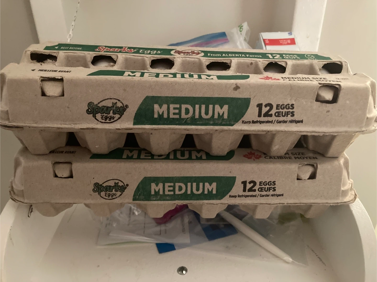 Two dozen Sparky's Eggs, medium size! From Alberta Farms, these eggs are perfect for all your cooking and baking needs. Keep refrigerated