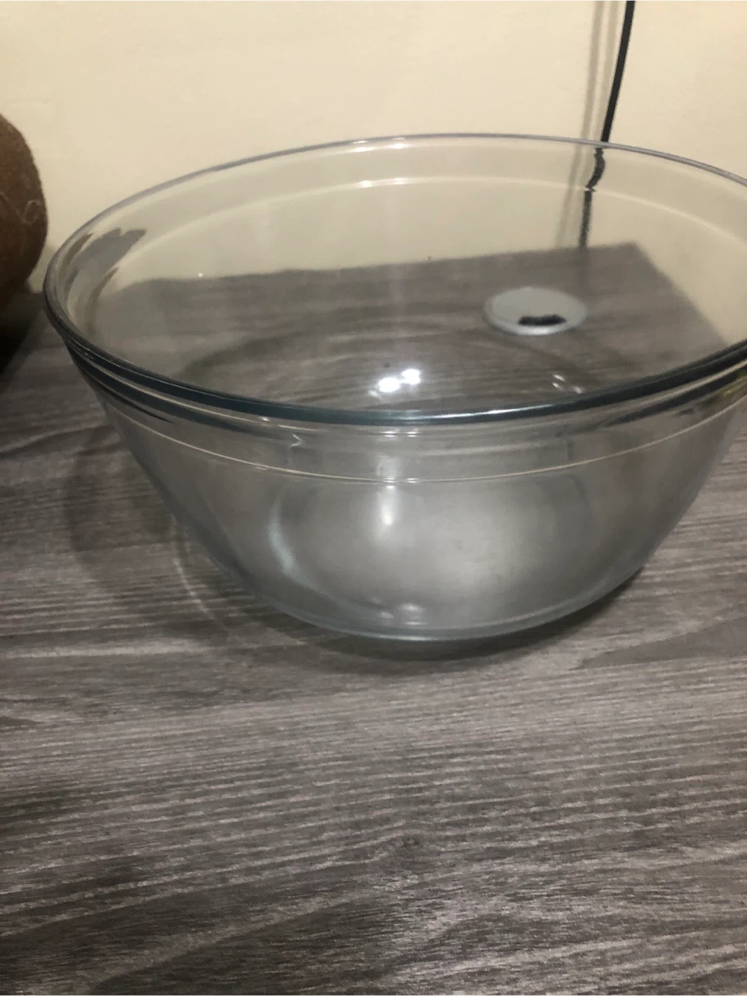 Selling a clear glass mixing bowl. It measures approximately 10 inches in diameter. Perfect for baking and food preparation!