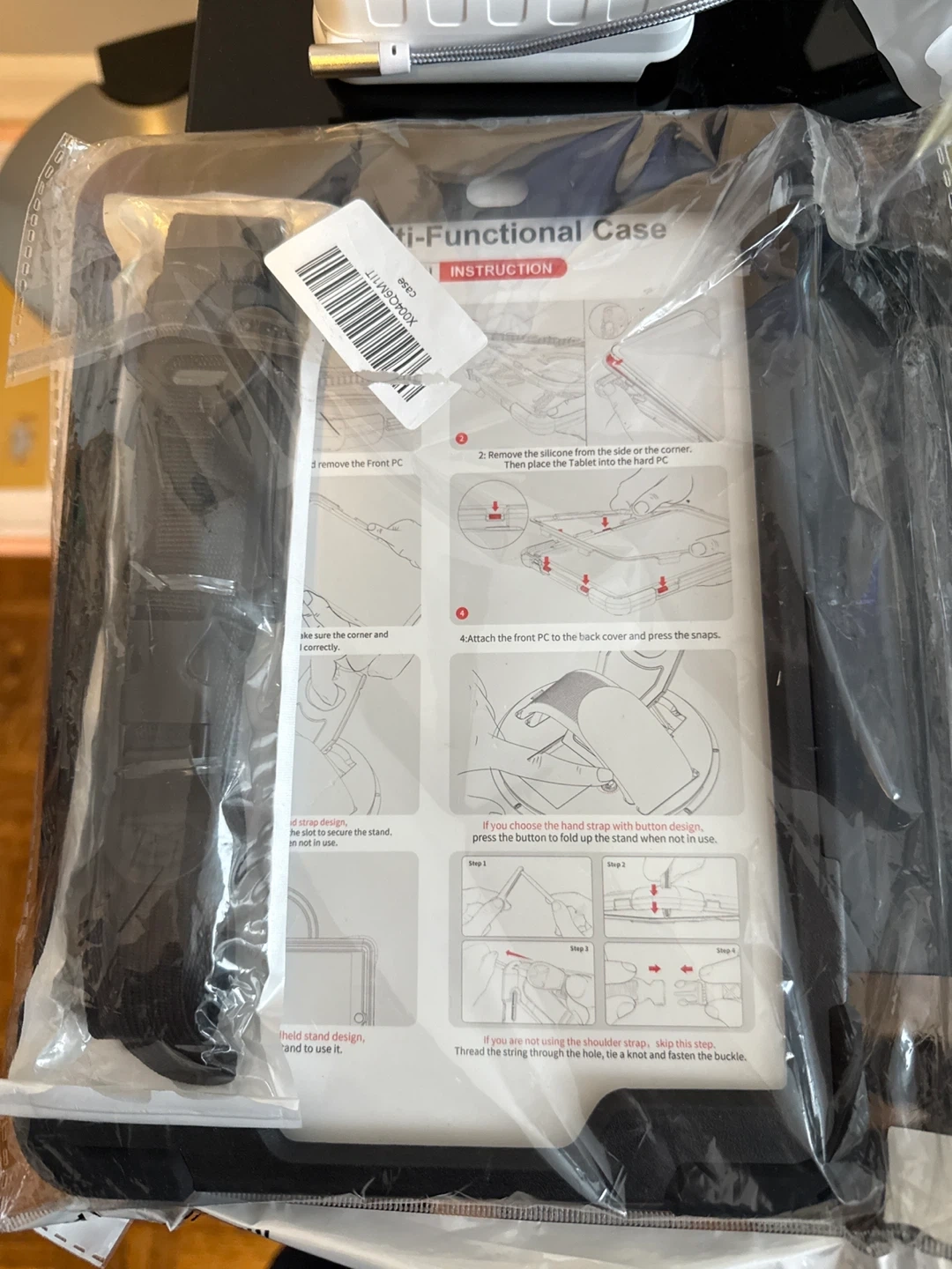 Selling a brand new multi-functional tablet case! It's still in its original packaging. The case features a hand strap with button design, plus a shoulder strap. It also has a stand design