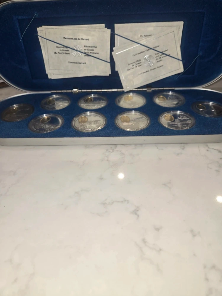 Selling a complete set of 1978 Canadian Aviation $20 coins. The set commemorates the first 50 years of powered flight in Canada. Each coin is in great condition and comes in its original case with accompanying cards. A great collector's item!