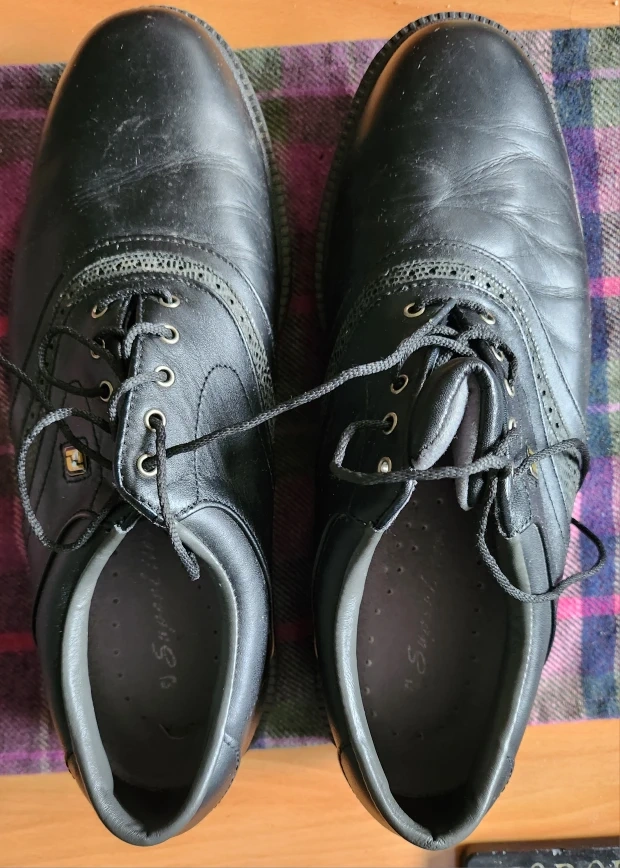 Selling a pair of FootJoy Glen Abbey golf shoes. They are black and in used condition. The size is 9.5M.