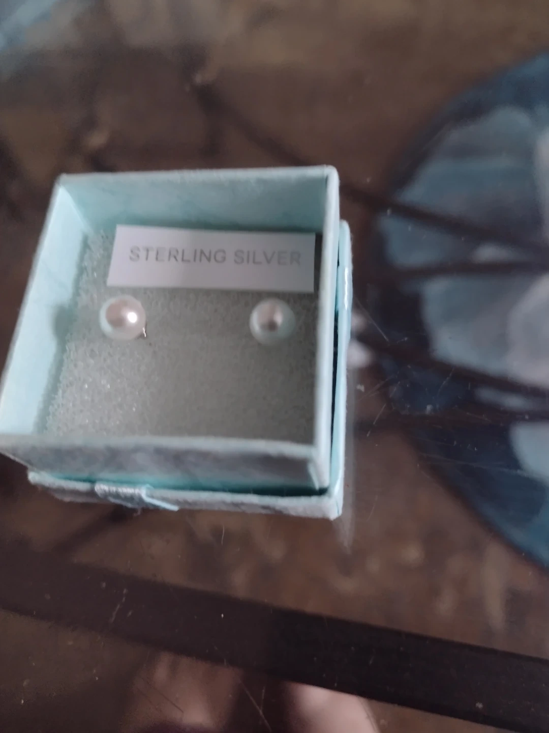 These are a pair of pearl stud earrings made of sterling silver! They come in a cute little box, perfect for gifting or keeping them safe. $10